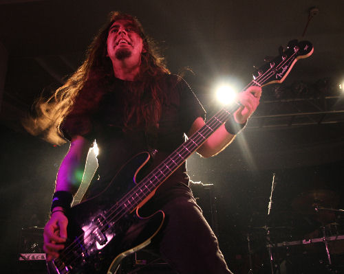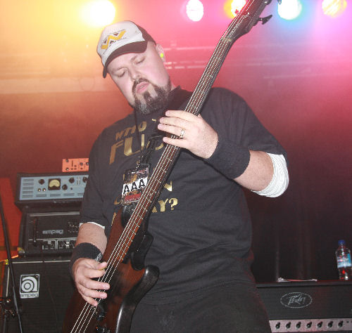 It’s been a few years since we have attended The Damnation Festival in Leeds and after a few pints in The Dry Dock, a pub on a boat we headed over to Leeds University hoping to remember our way around the building and be able to find the stages. No chance of this at first but we gradually got our bearings. It was not the best news for the death metal contingent though. First we had heard the news prior to going that Decapitated had been forced to cancel after being in a near serious accident on a flight a couple of days before. Luckily the Poles were alright. Secondly Cerebral Bore’s singer had missed her flight too meaning that the band were forced to just play a couple of songs without her. First band we were going to catch was in the absolutely rammed Mine area and I tried my best to head down the front to get a few snaps leaving Gizmo to get his beer spilled at the back as he attempted to take some notes. (PW)
