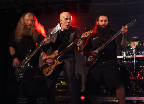It was a hard choice between Ulver and Devin Townsend especially seeing as we were only going to be able to catch half a set or so due to train confusion. As we wanted to be awake to catch ours it was obviously Devin that we needed like a breath of fresh caffeine so that’s where we headed and I watched him dart around the photo pit gurning like a loon. As mentioned at Bloodstock I still have not had the chance to catch up with a lot of the deluge of new material but what we saw included some older classics to tempt us with too. We wanted crushing grooves and some ‘Truth’ that’s what we got, we wanted interplanetary peace and some ‘Om’ action no problem and as for Ziltoid, all present and correct. The insanity of Devin is quick to spread and it has obviously infected the gathering throng who are in party mood. One song guaranteed to get a party in full swing is ‘Bad Devil’ which was a great swinging success. One has to feel slightly sorry for the rest of the band, they are present, correct and perfectly pitched but all eyes are on the front man as he hogs the limelight joking with the audience, darting around and pulling faces at everyone who catches his eye. It was a shame to cut it short but the days ‘Supercrush’ had become a bit too much and air and space to move in was needed so we left during that apt number staggering through Leeds in search of illusive trains.