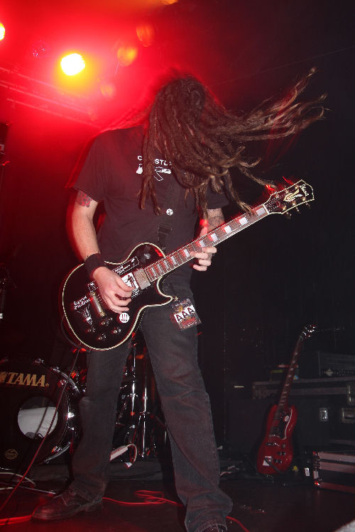 I headed to the thankfully more spacious Terrorizer stage next to see A Man Called Catten. Having been a big Medulla Nocte fan and seen Paul in a host of other bands during his career it was good to catch some of these songs live again. The intensity of old was certainly still there as were some of the facial contortions from the singer. I didn’t particularly recognise any of the rest of the band and not sure what has happened to the rest of Medulla apart from drummer Jammer who has recently given up the sticks for good. They did a good job though with some of the old songs which passed by in a ferocious head melting spasmodic blur. ‘Twice The Trauma’, ‘Bleed This Illness’ and the classic ‘All My Friends Are Dead’ were amongst the set. It seemed to divide those wandering in, some of who took a quick look at practically legged it out looking for something a little calmer and others banging away in contentment obviously like me having caught some of these songs live before. One complaint was that the band had too much dry ice cloaking their set but apart from that they delivered a nasty acerbic kick to the balls. (PW)