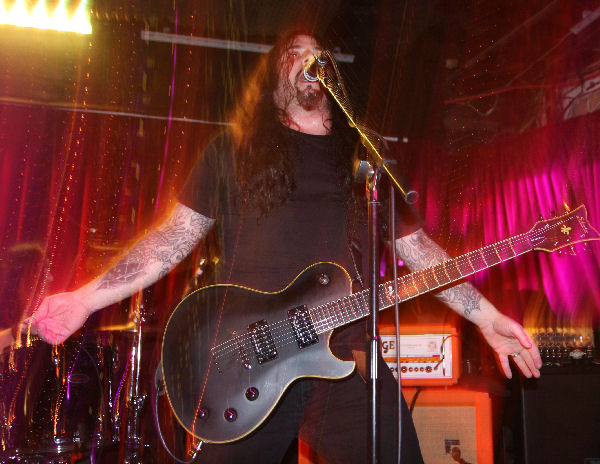 First up though were a bit of an unknown quantity (apart from a quick listen session to their songs online prior to the show). Blood Runs Deep are a Swiss band, and have but one self released album behind them, 2009’s ‘These Thoughts About Suicide,’ which is a kind of wrist slitting title and a half. They state their music is rather ‘slow and depressing’ but opening number ‘Lost Myself Again’ chugged in with gusto. The bass was nice and thick and some meaty riffs rumbled out the speakers. Vocalist Stefan Vida has a distinctive voice which is really gravelly. It sounds a bit like his vocal chords are being slowly dragged down sandpaper and I guess it might not be to all tastes but worked just fine for me. There is a feeling of doom amidst this with some slow lumbering parts surging forth amidst a clash of cymbals and guttural growls. Songs such as the albums title track meandered along capturing us in their autumnal glow and dragging us down into their depths. A touch of sludge was injected into proceedings and the music immersed as it touched upon both metal and rock spectrums, getting appreciation from the crowd who seemed to be moving ever closer towards the front. A flowing guitar solo flamboyantly wafted off the stage and everyone was by now nodding along to the music.
