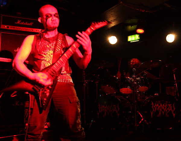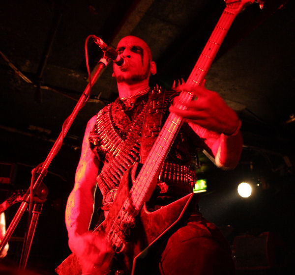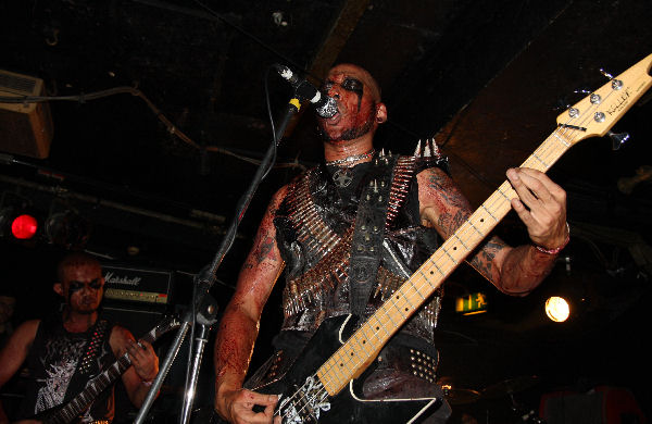 Impiety are no stranger to these shores. Statuesque singer Shyaithan informed us that they had been here 4 times in the past but it was their first time in Camden. I assume he meant this venue as The Purple Turtle is just down the road. Mind you he has probably never returned with the same band as this is something that is constantly in a state of flux. The bald but shorter guitarist really looked the part but by comparison the big mop of hair hidden behind the drum kit looked really out of place, luckily he made up for this by knocking seven shades of out his kit. Chants and feedback came out the speakers before they literally flew into their savage set. At first the sound was stripped down, raw and organic sounding but it worked with perfect clarity. A shout of ‘Christ Fucking Christ’ flew off the stage making ears ring and it was obvious about its intentions. Plenty of people were down the front banging heads in time to the onslaught. We were showered by spit from the front man so I quickly backed off. Songs such as the title track from new album ‘Ravage And Conquer’ were flung out with beastly intent and came across as seething cauldrons of hate. ‘Dominator’ thrashed blackly and was a powerful, ugly and glorious racket. After a bit of a technical break which was well needed for piss and beer break they were back twice as angry and summoning the ‘Nuclear Baphomet Goat.’ The apocalypse was served up and it felt like our faces were melting along with it. Finishing it off in style with a tribute to Quorthon and a cover of Bathory ‘Sacrifice’ the Singapore slayers had decimated us again. Follow that. (PW)