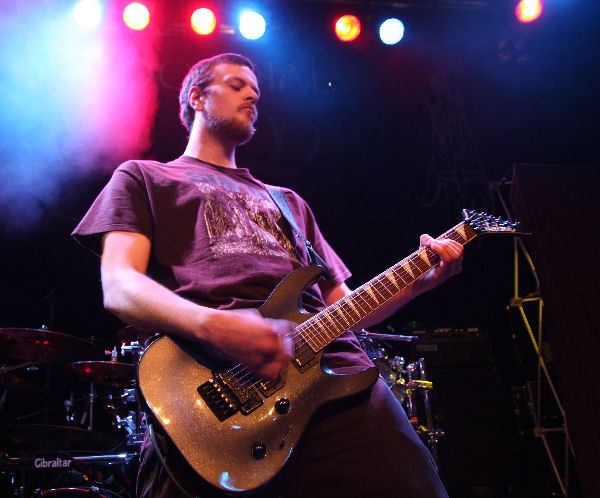 Apparently as soon as doors opened the night before the London show in Manchester 500 people were straight in to give Winterfylleth rousing support. London is one of those places where people prefer to sit in the pub (and with the beer prices here it’s not surprising) but combined with engineering works on the tube and the fact it was FA cup day there was still a very healthy turn out to watch the openers attempt to get through 35 minutes worth of music in 30. The sound was fantastic with the instrumentation coming off sharp, well clarified and thundering, with singer Chris’s vocals rasping over the top of the burgeoning incendiary pace. The mountain did not so much shiver as quake with the austere Vikingesque backing croons admirably soaring. Brutal and sweeping the music surged, there is no other word to describe it and the front three players lined up the across the stage cast in blood red light strumming hell for leather. The wall of sound was clearly defined but like a impenetrable army arms crossed and spears thrust forward there was no way of getting through it. By now everyone seemed really into things with fists being pumped up towards the sky. A new album ‘The Threnody Of Triumph’ is on the way and we got a new sharp and brutal cut from this ‘Void Of Light’ which struck as particularly unmerciful on first airing, fiercely bristling with furious jagged riffs and savagery. The homeland was defended and that set things up nicely for the last song, one that has become an anthem and one that leaves you under no illusion that this lot are one of Albion’s blackest heathen sons.