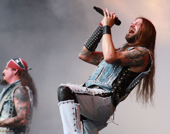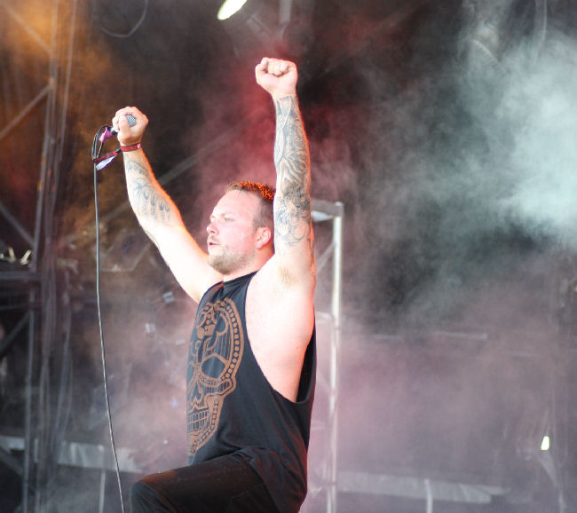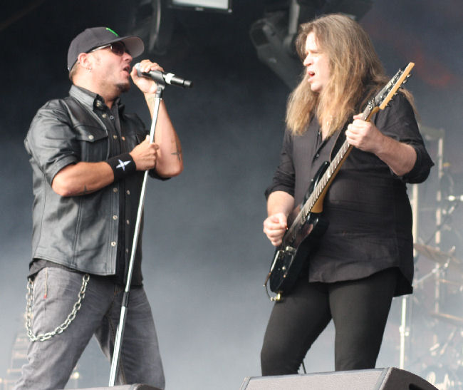 A mid afternoon slot for US power metallers Iced Earth was ideal, the weather was glorious as was the exemplary performance by this stalwart band whose followers turned out in droves for their set which kicked off with “Dystopia” from the latest album. Decked out in virtually matching denims, the guys powerful riffing uppercuts were truly infectious and delivered with consummate fortitude on “Burning Times” and the awesome “Angel’s Holocaust”. Plenty of tears for “Watching Over Me” as expected but soon sniffled away once “My Own Saviour” was unleashed on the baking crowd. A good mix of material was played from the bands extensive discography hut nothing from “The Dark Saga” which surprised me. New singer Stu Block was incredible, making Matt Barlow fans stand back in absolute amazement at his massive range and depth of tone. A lengthy section about human spirit and the mashings of political turmoil worldwide was inevitable from Iced Earth but proved a point by playing “Anthem” from “Dystopia” and following it with an emotive, epic and exuberant “Damien”. No Iced Earth set is complete without their namesake tune. This was a beast of a song packed with monumental riffs perfect for snapping the neck tendons in multiple places which I suspect many did during their magnificent hour set. (MH)