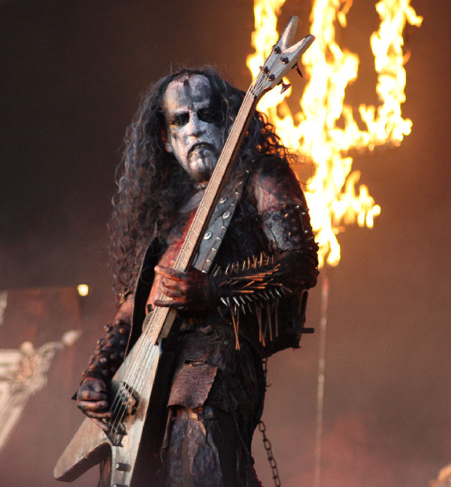 Yep there were many stories about Watain and their show and what may or may not have occurred after it. One thing that is for sure is that they came on later than planned. The spectacular set looked dressed and lit (tridents on fire) on time but as to whether they refused to go on until dusk was setting is uncertain. It did mean that the festivals stupidest clash of Watain and Alcest meant there was no chance of seeing the latter if you had like us decided to watch the whole of Watain’s show. Security were dressed in plastic as were some photographers (I a victim of pigs blood in the past could only smirk). There was none that I saw although others say a bit was flung and there was no foul stench. I am guessing the group were denied everything they would have liked to do. However what they did do both musically and visually was nothing short of spectacular!