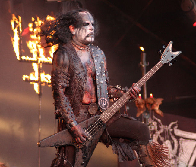 Ah can you smell that, it’s the stench of war as blackness sets in for Eastern Front a band we know well around these parts. It was almost like being on foreign soil catching this lot outside of London for a change but the band had plenty in the Sophie tent to witness them and those who had not caught them before no doubt were intrigued by their barbed wire encamped stage and strobe spot light set up. The show was certainly different in more ways than one as we settled down with the likes of old favourites such as Stalingorel and revelled in the onslaught and battery from the musicians and just how damn throat raping the full blooded shrill and shrieking vocals were coming from singer Nagant. However after hearing the ‘Blood On Snow’ material countless times the surprise was in the airing of not one but several new numbers. I can only say that the depth and complexity of these make it very hard to sum them up on the first listen also as for the titles well, we were told them in black gurgle speak something others in the band laughed About when I mentioned it later, guess that is one way of not unveiling them yet. I will say that mixed with the expected brutality there were some choral harmonies that took us to a slightly different place and there was some evident maturity on display here. A song about Freezing I believe had a militant but dare I say somewhat accessible stomping melody riding roughshod over it before we were dropped back into the more comfortable ‘At The Gates Of Moscow.’ The inevitable closer was missed as it was time for Watain so we thought.