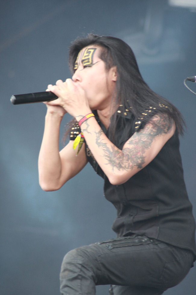 Taiwanese terrors Chthonic sorely disappointed me back when they played at Shamnation [sic] fest, so I was a little sceptical about seeing them today. However, today sees a marked improvement and there is far more colour to their sound than their flat performance last November. The mid-paced ‘Broken Jade’ marches in with thrashing guitars and a strong melodeath sound, while Freddy Lim’s fierce rasps come over the top. The Eastern nuances come across a lot more clearly today, with rather oriental and ghostly keyboards and nice use of violin. Their set is powerful and sharp, and older tracks like ‘Quasi Putrefaction’ manage to bring some atmosphere to the stage with eerie keyboards and blackened backdrop that emerges through a sea of dry ice. I still find myself thinking that while this band have a lot of good ideas and plenty to say for themselves, musically they are just a little better than average and while they gave a solid performance it far from left me awestruck. (LH)