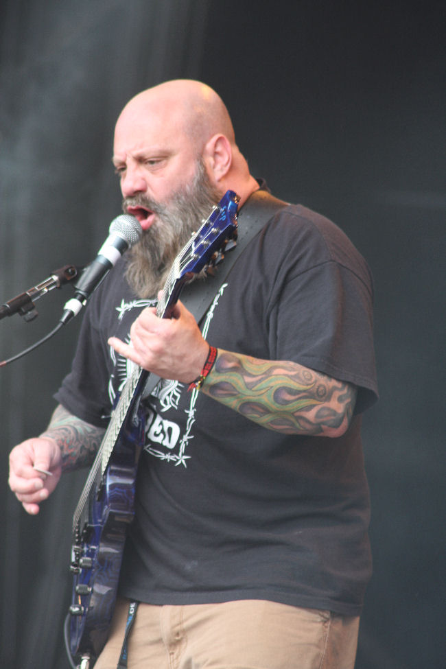 It was time for Conquering literally and who better to do it than Nola sludge uber-lords Crowbar? I had been looking forward to this as it’s not like the band play that often and it has been since Jan 2011 since they last gave us an up close and particularly rammed show inLondon. Tonight there is much more room for us and the band have loads to roam about on the stage too. Big, bearded, beefy, belligerent and bellicose are all good words to describe this bunch and their music. The ever formidable Kirk Windstein sounds like a wounded bear. Despite the room the band generally don’t need it and after hitting a groove pretty much stay static, trembling under the weight of their music. The crowd pretty much followed suit; nothing goes too fast in Crowbar’s world, it certainly goes heavy though. The ground may well have been hard but as the beat goes on it is impossible not to stomp away at it and hollow out a hole in time to the music. By ‘Planets Collide’ things lightened a bit with vocals hitting a harmonic pitch and sounding not a million miles from the late and much missed Pete Steele. This was one of the sets of the weekend that really did seem far too short but the ending of it with ‘Cemetery Angels’ was its very apt funeral.
