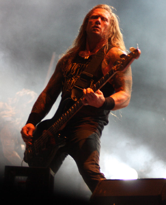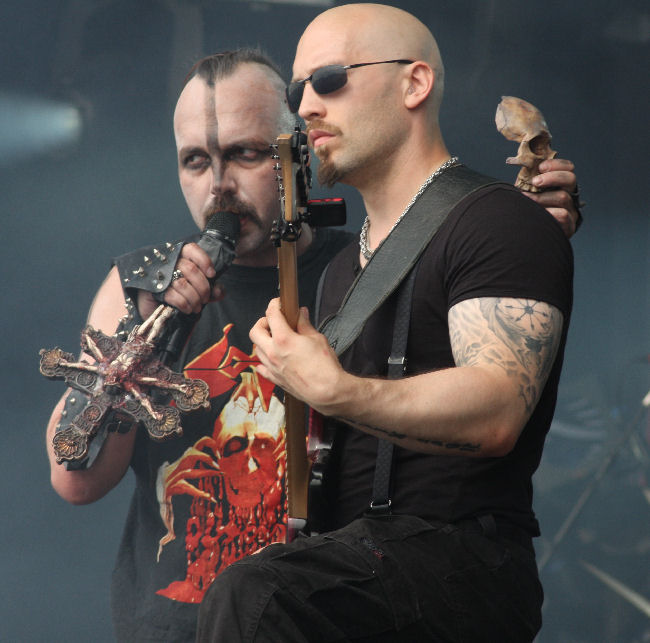Instrumentally as usual Hellhammer was buried behind his kit and there was something almost nonchalant about the way Necrobutcher, Morfeus and Teloch were strumming along. Riffs were jagged and moulded together in shapes that pretty much should not have worked over songs such as ‘My Death’ but somehow it all slotted into place. It came across as though the group just didn’t give a fuck and no doubt they lost the curiosity seekers who were there just interested in the group’s infamy and notoriety rather than the music itself. With this and the daylight playing time there was a certain degree of confusion but despite the sun staying in the sky, the band draped in dry ice exuded nothing but evil. There was no happy joy behind this festival performance as the messy technical riffs and horrendous vocal contortions took us into dark times with songs such as ‘Freezing Moon’ and ‘De Mysteriis Dom Sathanas’ It was going to be a while before we got the smiles back on our faces after this! (PW)