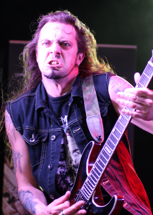 Much has been said about ZP Theart, the ex-vocalist from Dragonforce. His vocal abilities are undeniable on album, but his live performances have been inconsistent, making this show with new project I Am I probably one of the most important of his career in theUK. Power metal singers generally have an arrogance about them which matches the pomp of the music which I accept completely. Rock star attitude is OK on stage if it doesn’t interfere with the music being played, which it didn’t during their set which began very early atmidday in lovely sunshine that matched the upbeat tempo of the very melodic power metal. I have to admit someone said ZP looked like Captain Jack Sparrow, and I have to agree me hearties. After a short intro “This Is My Life” was promptly belted out with plenty of enthusiasm exuding from the stage. The most accessible songs from the debut “Event Horizon” were aired and created a lightweight bouncy atmosphere similar to the music of Bon Jovi in places though the tunes are much heavier of course. “Cross The Line” stood as a good moment being a highly memorable song with a fabulous chorus. With a short set time the band spent a little time jollying up the crowd which seemed to irritate some people around me, but was part of the show before ending their set with “Kiss Of Judas” and “Silent Genocide”. I’m certain I Am I won most of the crowd over though you can’t please everyone can you.  (MH)