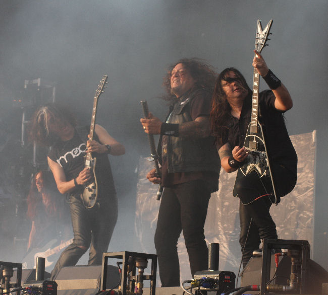 Testament’s new album “Dark Roots Of Earth” is truly wondrous and their two recent live shows I’ve caught are equally wondrous, the first being at Wacken this year and followed by this untouchable thrash force at Bloodstock. The eruption of sound from Testament was staggeringly good once “Rise Up” was underway from the new album and immediately followed by “The New Order” before Chuck decided to catch his breath and say hello. “The Preacher” was a catalytic pit detonator as was “Native Blood”, showcasing Chuck Billy’s unbelievable vocal talents. The guys range and texture is enormous and with a delivery enabling you to decipher every word the guy is surely the top singer in thrash. Going on the back of “True American Hate” as a touring slogan works well for stirring nutters up in the pit as does “In The Pit” obviously. The show was unstoppable from the start, with songs being smashed around the set from debut to new and everything in between, with “Practice What You Preach” being a particular favourite with the crowd, as was “Over The Wall”, a crazy thrashfest. “D.N.R.” and “3 Days In Darkness” closed what was possibly one of the most vicious shows of the whole weekend and probably had the largest pit of the weekend too. Bring them back for a headline show please. (MH)