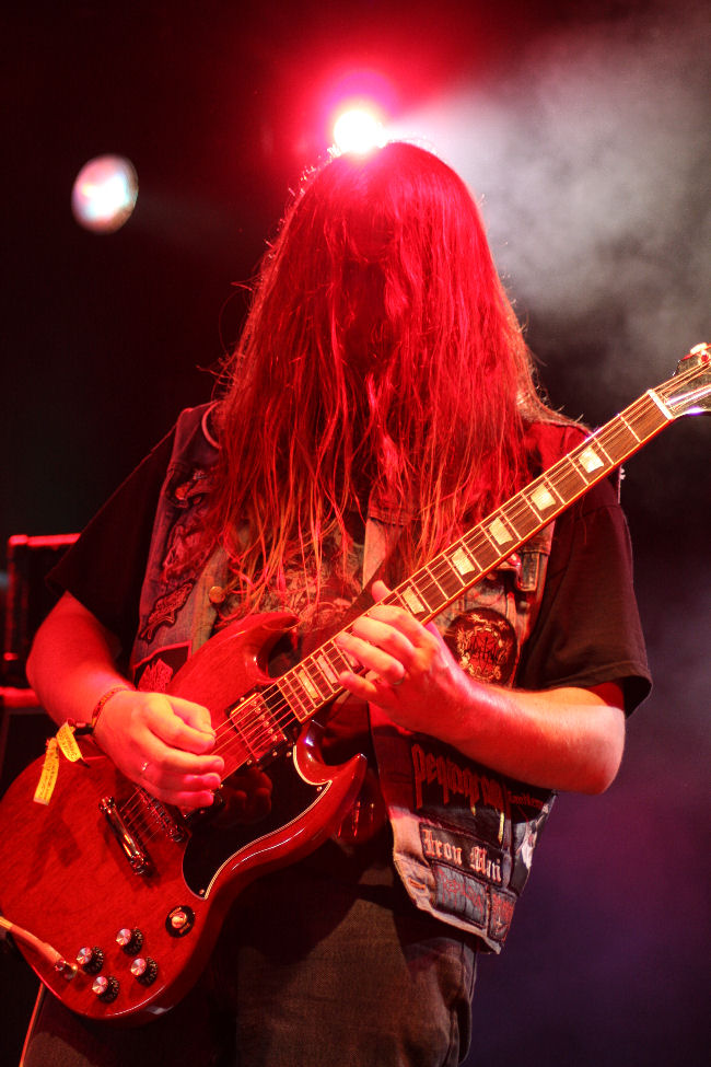 I was intrigued to watch Savage Messiah on the Sophie stage…it’s a good few years since I saw them in fact I’m not sure that our paths have crossed since they changed from their original moniker of Headless Cross. They always struck as the least accessible of the modern thrash bands, having more of a technical slant, not that it’s a bad thing. Today they are firing on all cylinders as they unleash their set of punishing old school thrash upon the audience through tracks like ‘Blade Of Conscience’. Killer solos and energetic riffs are dished out through a layer of flying hair, and ‘Intension Rising’ is aggressive as hell. Just the short sharp shot of espresso the system needs to kick start a second day of metal. (LH)