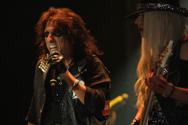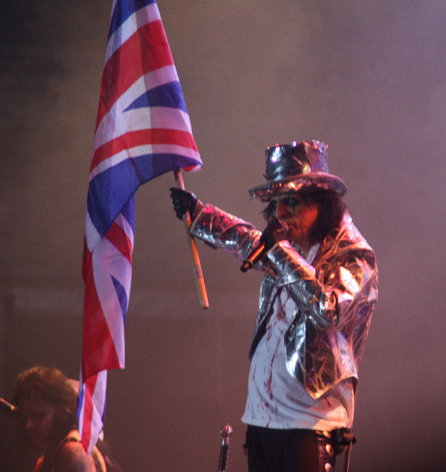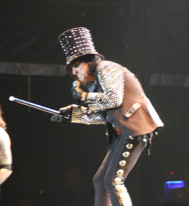 Well it is not often I get to review a band for the first time and by rights there is no excuse for not having caught Alice Cooper before. I was very pleased when he was announced as a headlining act and thought after all the years in the business it was well deserved and also at least it was not something like bloodyEurope again. I guessed that there would be a visual and flamboyant theatrical part to the performance and indeed there was as he descended down from the very gods spider like on an elevated platform to the austere voiceover that was unmistakable as being Vincent Price.