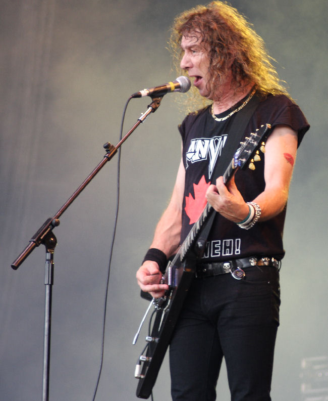 A number of years ago, before a certain film came out, a drinking companion and rather good metal writer said to me “you’re not a real metal fan if you don’t know the riff to Metal on Metal.” At the time, far too few people around the world would have been able to hum those oh so influential chords, whilst old gits like me would dust off old vinyl and tapes to relive our youth. All I can say is forget trends, forget what the scene may say, just revel in the power of Anvil! After decades of playing pubs and bars, by simple force of enthusiasm and will, Anvil are now main-staging Bloodstock 2012, the only true sizeable UK metal festival of 2012. Forget the no show of Sonsisphere and ignore the commercial bombast of Download; BOA is the real deal. So, after two days of blasting metal of a host of sub genres, what did Anvil bring to the well stirred cauldron of BOA? In simplicity, fun and enthusiasm!
