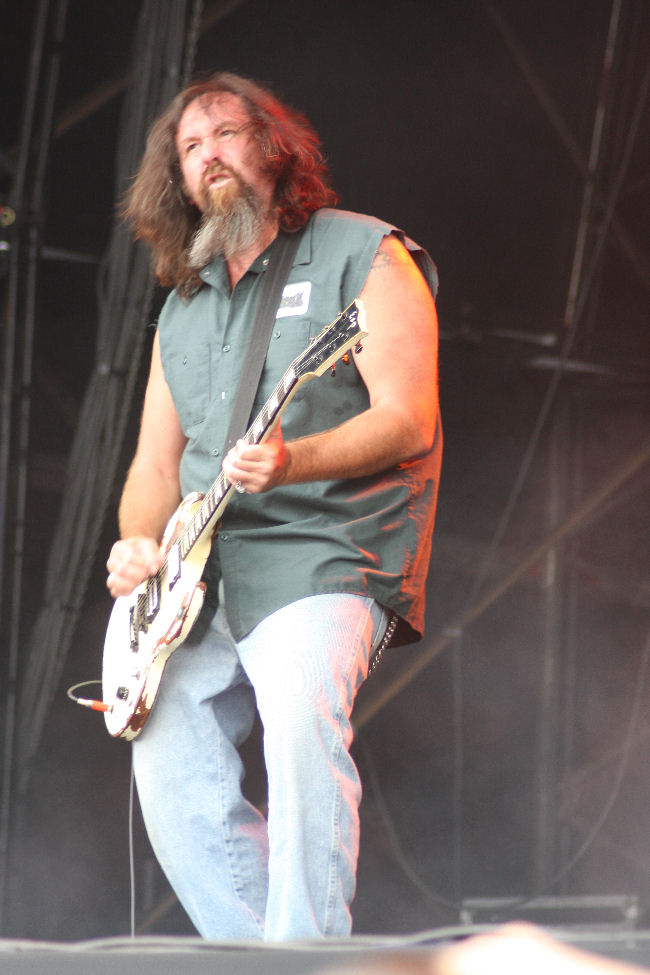 I arrived at Corrosion Of Conformity playing “Mad World” from their hardcore classic “Animosity” and it is well known the band has gone back to the older stuff apart from a few classic tunes in their repertoire. The bands self titled new album is a mix of crushing sludge moments and hardcore, demonstrating the ability to be a three piece on stage but still have a brutal and effective sound. Mike Dean’s bass playing was crushing at times and really tested the integrity of people’s rib cages. A trio of new tunes starting with “Psychic Vampire” were played, that showed the riffing technicality of Woody Weatherman on guitar. The link to “Your Tomorrow” was seamless as the songs flowed like oozing magma from one to another. I was surprised by the groove metal inclusion of “Vote With A Bullet” with its treacle thick riffing but I enjoyed it all the same like everyone else. For some reason Mike decided to climb on his bass amp and then regretted it, as it looked like it caused problems once “RatCity” was played. An audience chant of drum solo during the pause had Reed saying I don’t play drums very well; bloody liar. Once sorted out it was into “Holier Than Thou” from the hardcore days and even earlier the excellent “Positive Outlook” from “Eye For An Eye” released some 28 years ago. Closing the set was “Technocracy” as I anticipated and despite the sound problems self inflicted or not, C.O.C. were giving it their all. (MH)