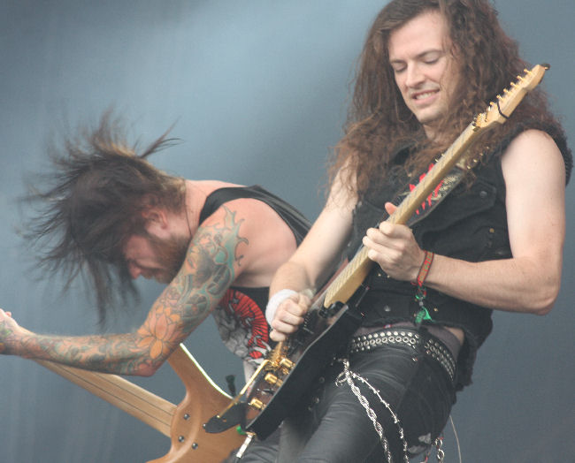 Sunday morning. Hungover and suffering from that nearing-the-end-of-the-festival fatigue, one is in dire need of a pick-me-up. Something loud and heavy to get the blood pumping as it were. Off to a galloping start then, are female-fronted Canucks, Kobra And The Lotus, who have received more than their share of hype of late, and from today it is clear none of it is justified. True metal by numbers, they are one of those bands that throw all the right shapes and dole out all the expected clichés but the music is dull, uninspiring and tiresomely generic. Sure, the front woman has quite a strong presence on stage and is clearly in it for the right reasons, but it would be patronising of me to say that her vocals were anything above woefully average and at times downright painful. After a few songs we wander off in search of coffee and blissful silence. (LH)