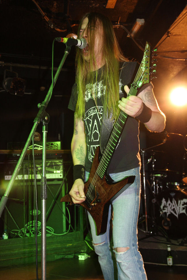 Grave are essentially the forefathers of the Swedish death metal scene, I have seen this band countless times before and normally as a support act they are faultless, unlike some previous headlining slots as a peer mentioned to me on the night. However, ‘Turning Black’ from the ‘Soulless’ album made its mark in one massive swoop of dirty death metal. There was a little bit too much busyness in the live sound that meant the crunchy low end grunt of the typical Swedish tone was a little flawed with both guitars at one and with solos being less audible, but I guess those at stage front did not really care, and it wasn’t a major factor of discontent for me really, just an observation. It took until ‘You’ll Never See’ is played, from the 1992 classic album of the same name, to get the crowd moving and making a “pit” circulate. Whilst it was enjoyable to see I was pissed off when most of the next chap to me’s pint soaked itself over my head and t shirt, hence my journey home was reminiscence of stale piss and beer smells, wonderful, but nothing new I guess for those that know me! [I was more pissed off it was my beer Pete ed]