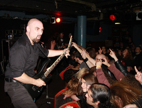 De Profundis are a band who I was well aware also mix up a lot of styles to their sound. They too have a new album out ‘The Emptiness Within’ and were fitting around five mainly new songs into their half hour slot. Bare chested and long haired front man Craig Land dominated the stage front and commanded things well with hoarse barking vocals but it was not all about him as the twin guitars unravel and flow with great dexterity. The band are great to watch and their musical multiverse is one that is completely involving with its meltdown of styles. I guess the word progressive is a good one to use and the group are certainly extreme; after that it is a case of just really going with the flow and groove of songs like ‘Release’ The band remind a little of Portuguese group The Firstborn but apart from that fleeting notion they really are quite unique. They seem to play off the now much busier venue and are happy with the reaction they get from the home crowd, it is interesting to note that they are actually hugely popular in India and play in front of much bigger crowds there. ‘Delirium’ is a good title for a song from them as that is what De Profundis leave us in, suitably maddening and meandering structures have the band formulating a melting pot of styles and one that is very good to witness as I have missed them far too many times of late.