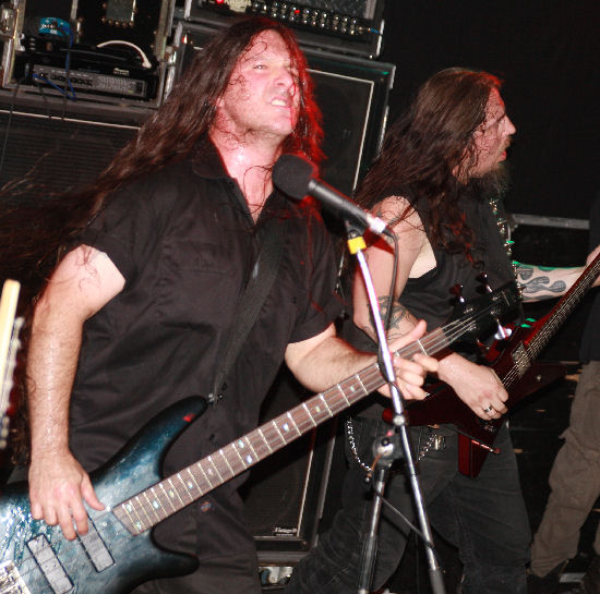 For many Immolation were the main draw and the renowned USDM masters who have been around since 1988 should really have been headlining a tour themselves but with the economy as it is this pairing with Marduk did make perfect sense. Immolation certainly played as though they were the headliners and instantly got the packed crowd baying and pitting at the front as they steam into ‘Close To A World Below.’ It was intense and dynamic with clashing snares and vocal roars flying out the speakers. I tried to remember back to the last time I caught them at this very venue, I am sure that Ross Dolan’s hair was not that long and it looked like he had to be careful not to get it caught up in any of the guitar necks during ‘Majesty And Decay’ We were actually told by the singer that we should not be lazy but to go and download the old stuff for free and he also humbly apologised as London got missed last time they went on tour with Napalm Death. The blasphemous attack of ‘Father, You’re Not A Father’ and ‘Into Everlasting Fire’ proved that London was willing to forgive and forget and the crowd more than made up for it now and even got the odd diver throwing themselves into the seething pit. Some of the guitar solos particularly impressed and by the time I fell out into the street for some fresh air after a heady No Jesus, No Beast even if it was Marduk that I had come to see, I wasn’t unhappy at having caught this savage display.