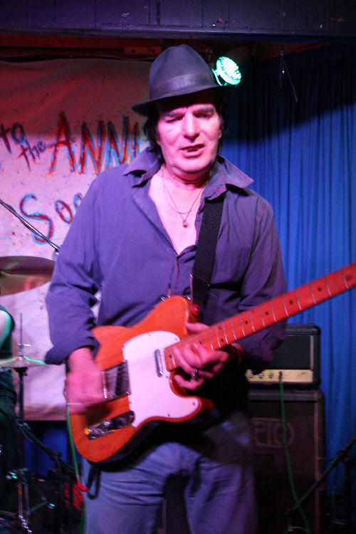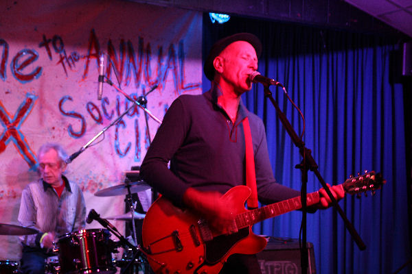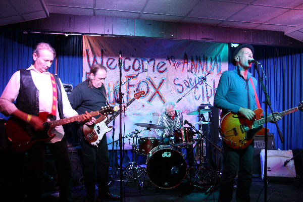 This is one reason that this was such an important milestone of an event even if I did only find out about it a couple of days before it took place. This social club is put on yearly to celebrate the life of former Ruts singer and guitarist Paul Fox who grew up down the road in Hayes. It’s a charity event raising funds for the Michael Sobell Hospice. It was therefore heartening on turning up to find that this fairly large sports club was already incredibly busy and everyone seemed to be in great spirits as one of Paul’s other former bands The Dirty Strangers took to the stage. It was obvious looking around that many were here for the cause and for showing support to it and there were no doubt friends and family here too. It was not just about the music but it was a celebration of it which we could see as both young children and pensioners started busting a groove. “Is that so and so?” was constantly on my lips, there were some familiar faces as well as many no doubt from the local community. Where all the pork pie hats came from was one of many unanswered questions. The Strangers themselves were a bit old cor blimey, boozy and bluesy pub rock which fitted the mood perfectly as well as the venue. We felt we had walked into a private party a bit but that did not stop us joining in the festivities and having a good old knees up too as the Dirty ones sang about their long lost ‘Baby’ and ‘Baby Blue’ (a Gene Vincent cover) still we were hardly crying into our pints. It was obvious that this was a bunch who grew up on the sound of good old rock and roll and discovered they liked playing it and have no doubt been doing so ever since. Apparently in their time they have recorded with Keith Richards and Ronnie Wood and they were obviously great at what they did and a perfect opener to get the place in party mood.
