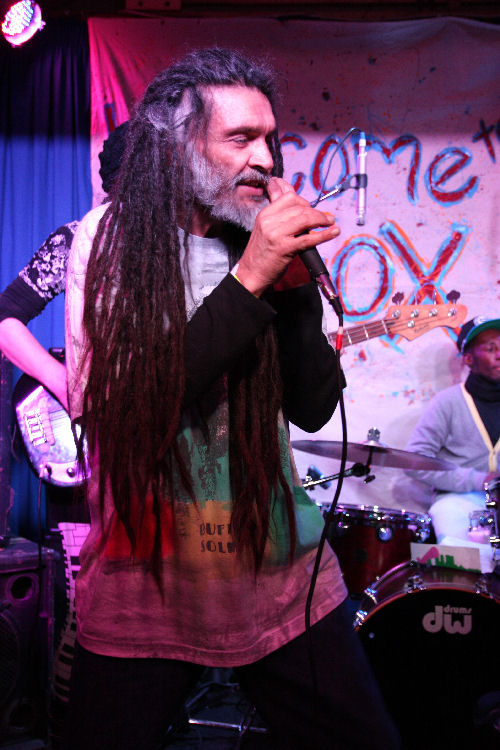 Next up were a completely different entity The Dubcats. Paul Fox liked dub and reggae which is evident in the work of The Ruts and Misty In Roots who he was heavily involved with in organising the Rock Against Racism tours of the 70s and 80s. He pretty much discovered this lot in former incarnation the Dub Honey’s and it seems they are regulars at this yearly event. I was first struck by the age of the very young guitarist and settled down to enjoy what was to come. What came was nothing to settle down to this was a sound that was impossible to keep still to. Call it Reggae, rocksteady or whatever, it was powerful and made your feet move. The two singers were both excellent, the massively dreadlocked Locksman (name well suited) and chanteuse siren Lady Flame worked in perfect harmony together. The heady keyboard sound clash perked it all up and the dub heavy rhythms were impossible to ignore. Luckily I managed to get away with taking photos rather than dancing badly. This took me into a very heavy festival vibe and times spent watching the likes of The Rhythmites and Community Charge. Although drink called and it was a case of getting caught up talking to people so I did not see the entire set, what I caught was most enjoyable.
