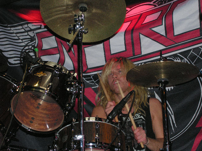 Swedish Heavy Metalers, Enforcer decorated the stage with banners and candles, providing a more ritualistic atmosphere. No fashion, no posers, just the uncorrupted heavy metal ideology.
