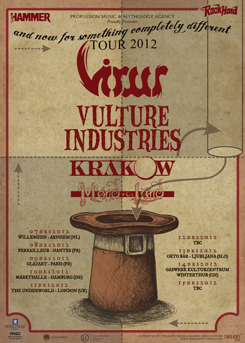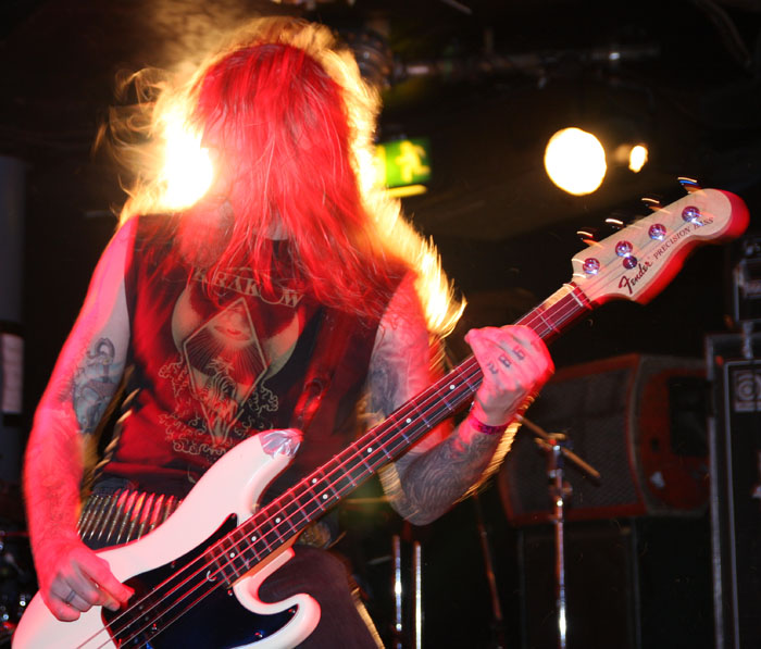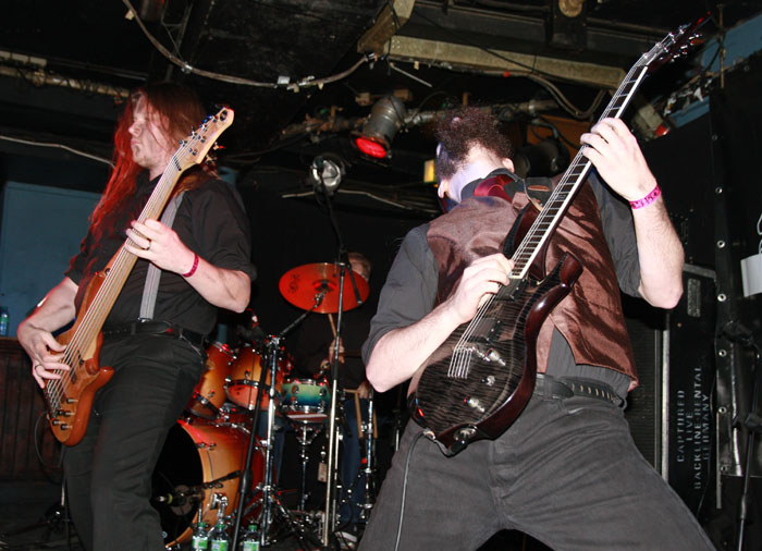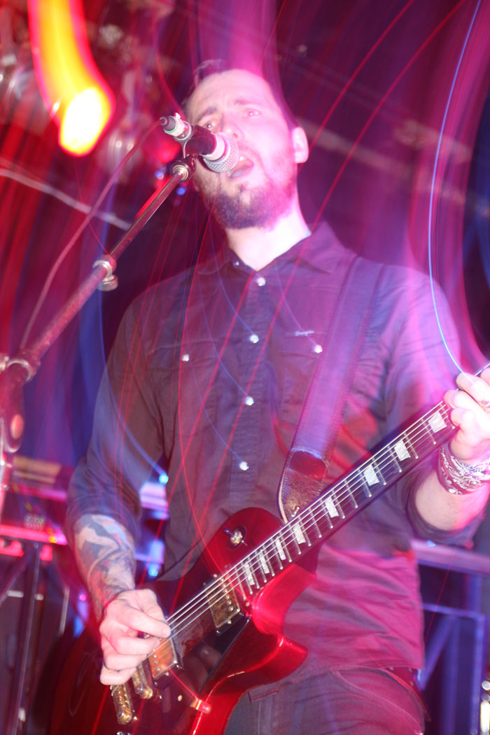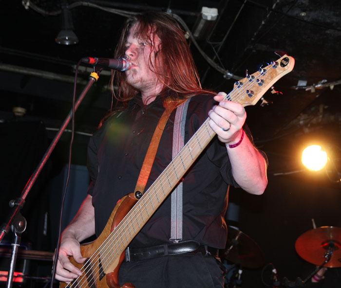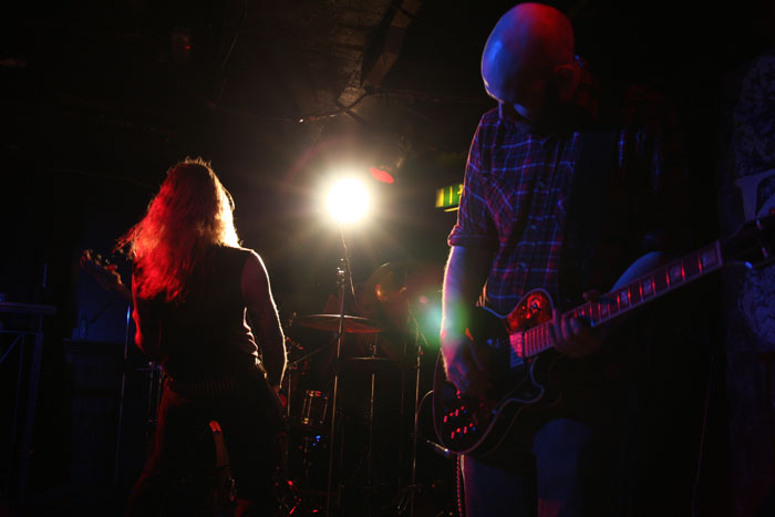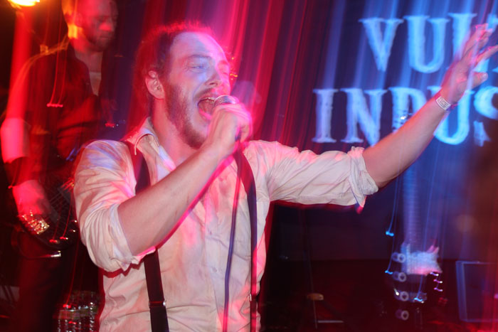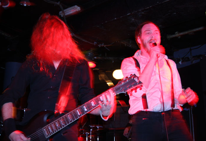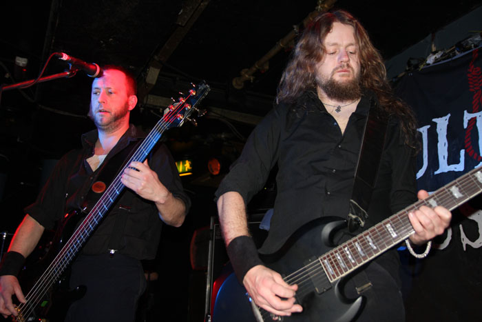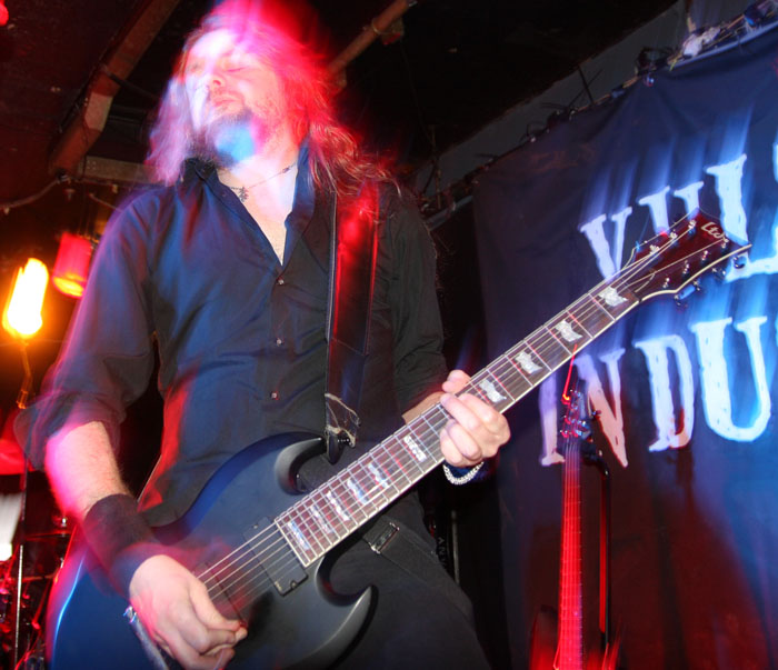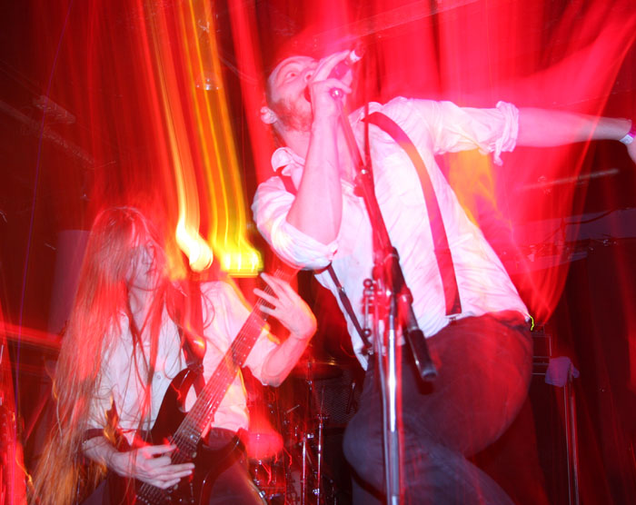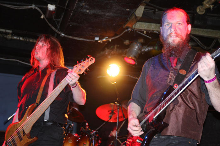 Vulture Industries were perched to go on and as the carnival crazed intro music played out members shed shoes and socks and got in position looking like deranged funfair barkers about to hit their marks and take their money. Once they started it was a frenzied blur of motion as they swapped places and charged around not standing still for a second. Biggest loon of the lot is undoubtedly vocalist Bjornar. He may not look quite as nuts having had a bit of a trim since we last caught him on stage but he made up for this by stamping feet, pounding chest and cackling like a madman. It has to be said he is one of the most theatrical front men around and considering that all the other bands tonight were somewhat static this lots performance was always going to stand out. There were harmonic croons, bursts of prog noodling and delirious ever changing avant-garde passages keeping everyone on their toes. The venue was still criminally unattended but everyone here was right down towards the front giving the band back as good as they were getting. The singer paused after a number and asked how everyone was doing and were the band doing well? Yes was the obvious answer. ‘The Cursed Flesh’ was one of several aired from most recent album ‘The Malefactor’s Bloody Register’ and it seemed like many here knew it. I thought I had seen a kettle on stage which was odd, it turned out to be a big iron spotlight which the singer picked up making things all eerie and trippy as he shone it in his face. Next it was time to really embrace the Gothic as Frankenstein was saluted with ‘Blood Don’t Flow Streamlined’ the performance took on ever more flamboyant and theatrical flair but luckily there were no burning pitchforks from this audience who were lapping up every bit of it. The keyboard programming may not have been live but the grimly fiendish tinkle of it was the icing on the cake taking us off into a bizarre cartoony waltz. A last song had to come unfortunately and that was ‘The Path Of Infamy’ a dark debauched pantomime perfect for the season and indeed the fog bound streets outside. You could almost imagine the Ripper stalking this path and the Victoriana fuelled show had been a great one. Only problem was it was going to be near impossible to follow.