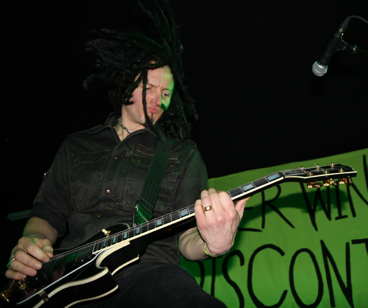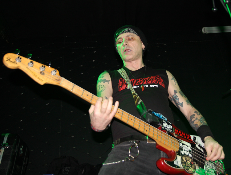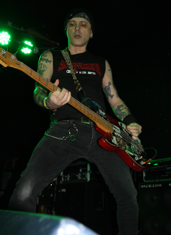 Songs came thick and fast, Hoddy played close to the floor at times and Colin was kneeling down beside him. Some songs had to be played and the likes of ‘Increase The Pressure’ were flung out with as potent a message as ever. During most recent album number (yes that was released in 2003) ‘There’s No Power’ there was one bit of aggro from a large skinhead gentleman with braces on but he pretty much got catapulted out of the venue courtesy of the singer who bowled off the stage, doing the job and hardly missing a word. I thought I had read that there was going to be a female singer joining the band at some point but this did not happen however Kerry Bovell did get up and we got down with some dub beats from the band allowing us to chill momentarily. Everything flew in a blur with Meat Means Murder and This Is The A.L.F. being thrown into the set and the hour and a bit they were on seemed over really quickly.