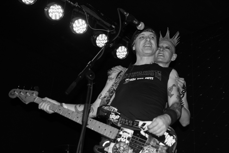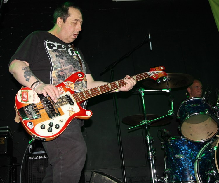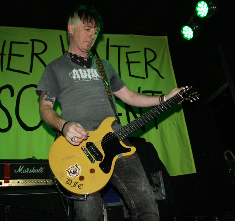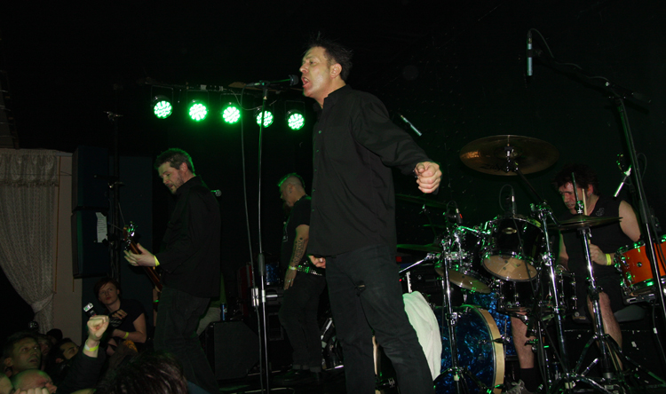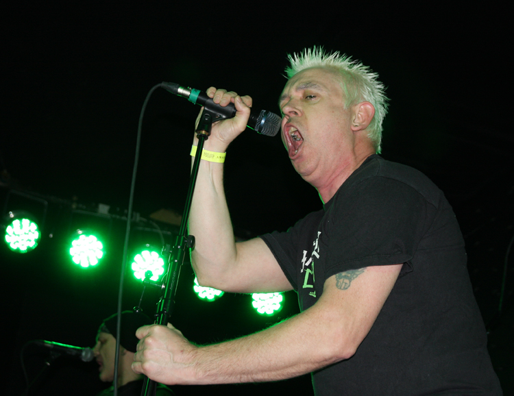 I should have come across the next lot before, no excuse but I only knew Drongos For Europe by name and as they came on stated that time was of the essence and blew into things it was obvious I have been missing out. There was lots of posturing and guitars were flailed with finesse. Adrenaline was of the essence and the short sharp bursts of punky goodness had much in the way of spiky haired enthusiasm finally going for it down at the front. Although this have been around since 1979 they exuded a freshness and a hunger that many a new band could not match and the Brummie mob have got their fast as fuck craft down incredibly tight and precise with anthem like parts causing us to bounce around along with them. This was classic punk and you could have name-checked a host of acts, a touch of Exploited here some DK intricate guitar work there and absolutely no bullshit but a straight ahead driving pace to match. A song called ‘Freedom’ said it all with some jagged fretwork fired out and Clash like vocals all chugging along at a fair old lick like an out of control express train.. There was no time to waste and other numbers like ‘Revolution Times’ were quickly fired out.
