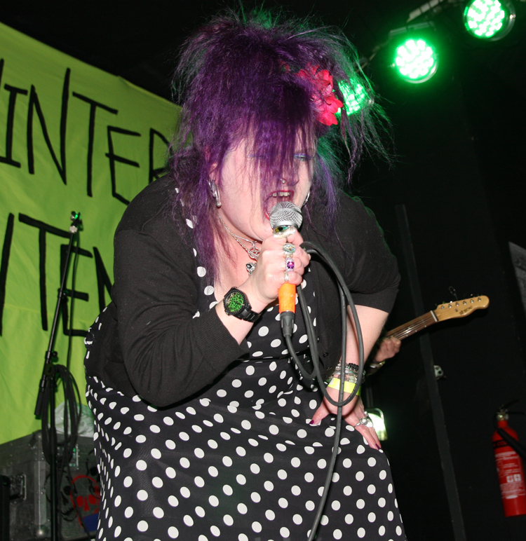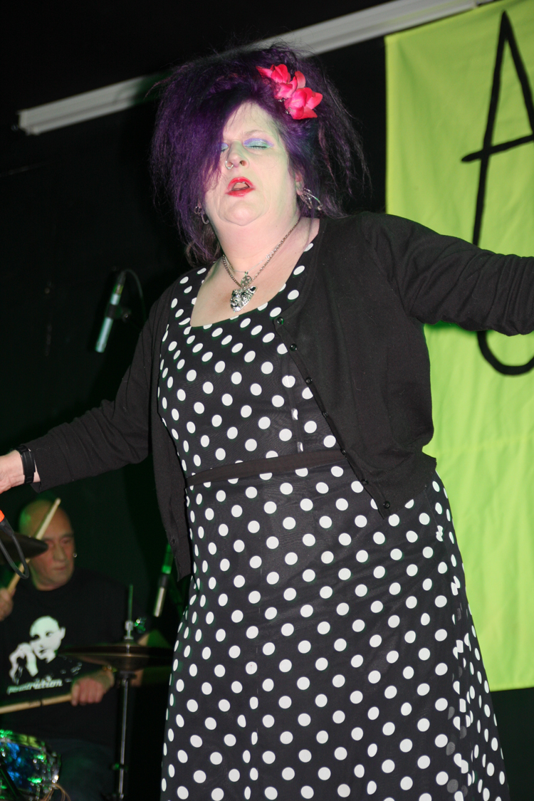 For me Decadent Few were the main supporting draw and I was trying to think back and remember if I had even seen them before. Memories blur but some of these songs were instantly timeless. Founding member and singer Kay Byatta may have looked as though she had her best party frock on but a four letter rant spilled out of her mouth quickly as they took the stage and it was evident this was a band still at war with injustice, fuck the system indeed! The chugging beat of the band along with those unmistakable vocals leapt out the speakers and we were off on a potent trip that probably had others like me looking through their old vinyl the next day. Alas I could only find the one track on We Don’t Want Your Fucking War compilation and even if not recognising most of the material tonight it felt as though it came from a very comfortable place. Blood On Their Hands came an indignant shout out about the fucking government and I loved the thick fuzzy bass sound rumbling out the speakers and the pounding almost tribal drum beat. The voice rose above it all though and totally commanded. The timings for the event were running like clockwork but people were demanding an encore and they got one rattled out in three minutes. Now all we need is for someone to gather their stuff together and bring them all out on CD as I’m buggered if I can find anything.