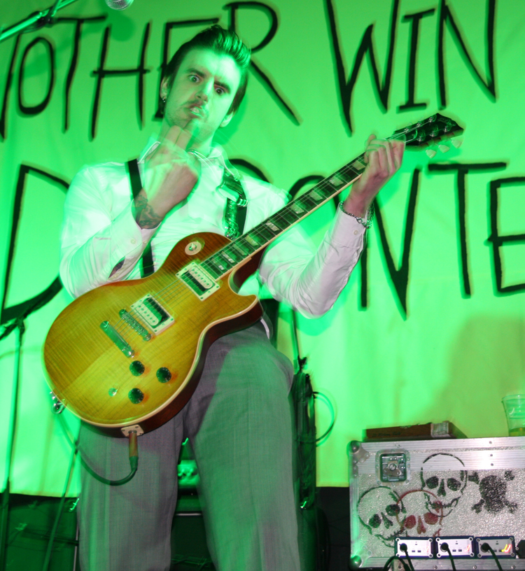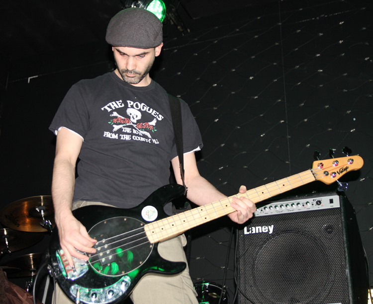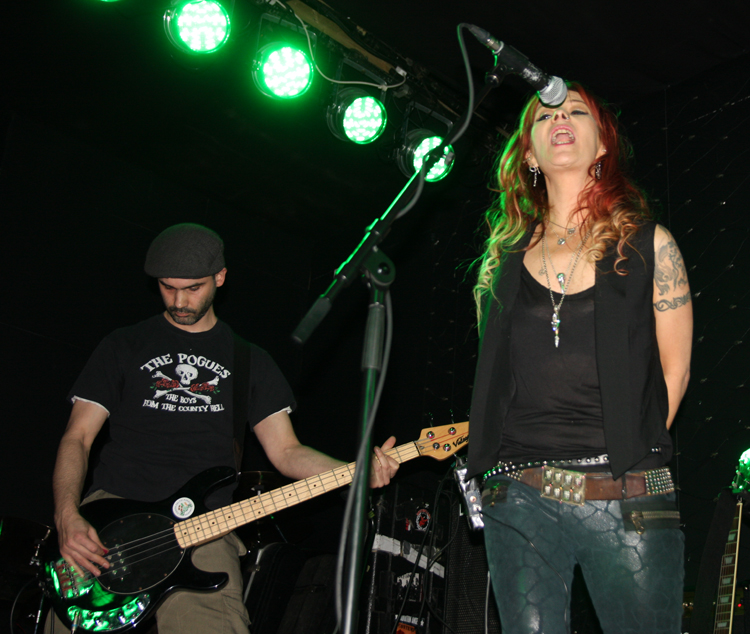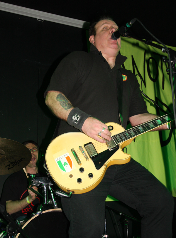 Looking down the street the off licence was mobbed, which explains where a lot of people were. Why miss the bands for the sake of cheap beer? Inside the booze was going to flow quick for the Oirish punk of Neck a group from the emerald isle that is County Holloway! That aside they are probably as Irish as The Boston Arms pub itself and they sounded the real deal as they blew into a wild jig complete with fiddles, pipes, blarney and it all sounded grand begorrah. We have heard it many a time before from The Pogues to the Dropkick Murphys but this sort of style should bring even the lame to life and get them dancing around. Strangely enough the audience although watching appreciatively were more intent on sipping their Guinness than getting all manic, perhaps saving things till later. The green lighting bathing the band seemed just right to accentuate their sound and one particular moment descending into hoe-down country took us every ridge way it could in an almost Dukes Of Hazard type style via County Donegal, all that was missing was the cowbell. What’s left to say apart from for one mad half hour we were all plastic paddies.