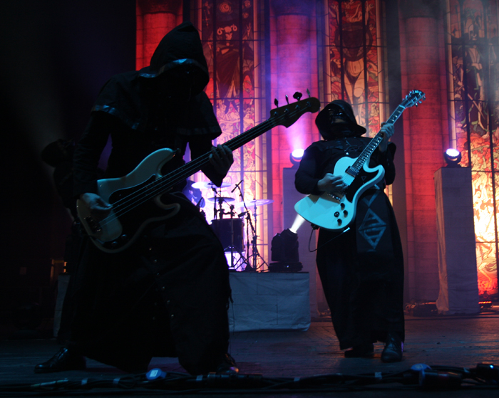 Not that Ghost probably cared. Their stage set-up probably necessitated their headline position as elaborate stained glass windows and the church like trappings took a bit to put together although the stage crew did so in record time. We were pleasantly put in the right sort of head space for what was to come by some lovely flavoured incense down at the front as we waited for Papa Emiritus II and his nameless ghouls to deliver their sermon. This was my first time seeing Ghost and it was not through lack of wanting to but the band exponentially Kvlted before they even had the chance to start off small and played the sort of events I tend to avoid. Still I had been converted from the off musically and been swept along by the crazed press devotion enough to buy their ‘Opus Eponymous’ and found myself in love with it straight away. So on the eve of new album Infetissumam it was high time I found myself at church!