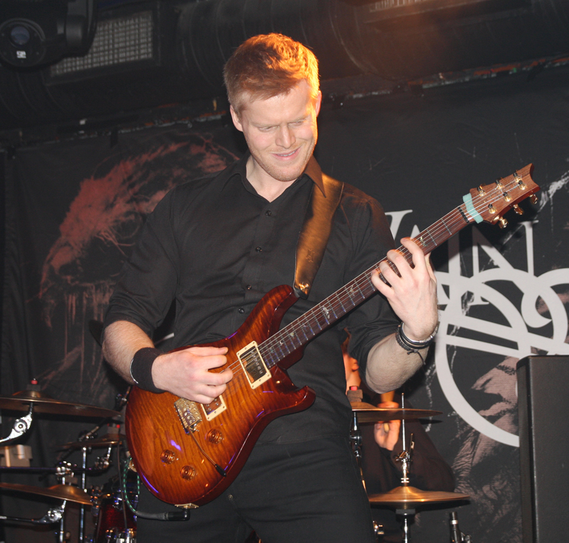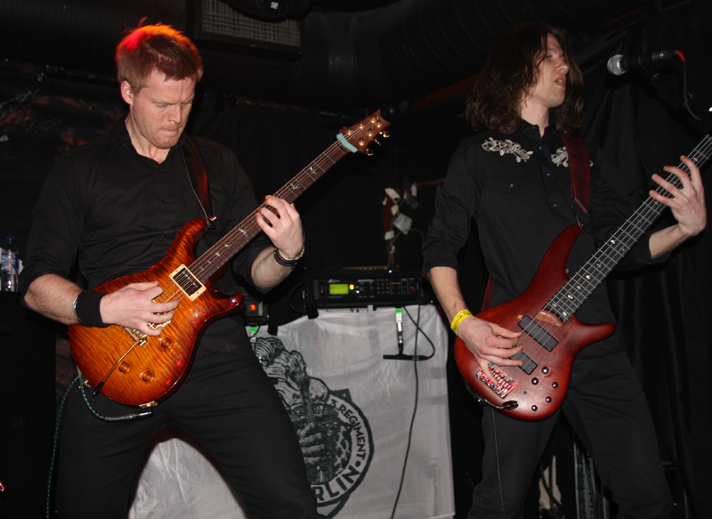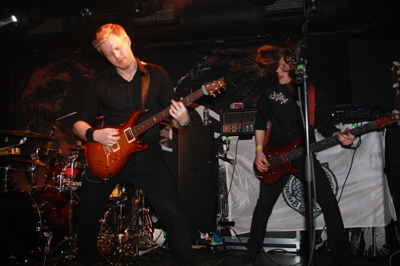 I thought this was the first time over here for In Vain but they announced they had been over before in 2007. Mind you I am a recent convert to the band having only really heard them on new and very impressive album ‘Ænigma.’ There were six of them lined up on the small stage and at first their sound needed work on and was leaden in the mix as we looked for a vantage place and got acclimatised to the rather busy venue. Everything clicked much more cleanly into place on latest single ‘Against The Grain’ though and Andreas Frigstad who had been adrift on the first number burst into life adding some ‘head biting off’ harsh vocals to the more harmonious croons coming from Sindre Nedland and the backing vocalists. Musically this is a band with lots going on, twisting and turning riffs in a constant ever flowing state of flux. It was quite a lot to take in with them all packing the stage both visually and musically. They announced older song ‘Det Rakner’ as being Norwegian and so they wanted us all singing along which got response from a Finn saying he would try his best. With feral vocals and thundering drums this was really thrown out at a neck cracking pace and had my feet stomping along working overtime to it. The clean vocals, well they are not a million miles from Solefald but this is not only their backing band but also Sindre is Lazare’s brother and the striking similarity (someone kindly shouted he was fatter) in most aspects have been mentioned. It was all involving, complex and expertly played. At one stage the band seemed to effortlessly jam into a very Led Zep flavoured weave and brought a large progressive flair to proceedings before moving straight into a galloping fervour changing styles on their heads. Numbers like ‘The Titan’ really impressed and the band had a nice length of time for us to get well and truly into the swing of things. It was much better than packing touring bands on with pointless local supports and it’s fair to say that both audience and band really made the most of this show.