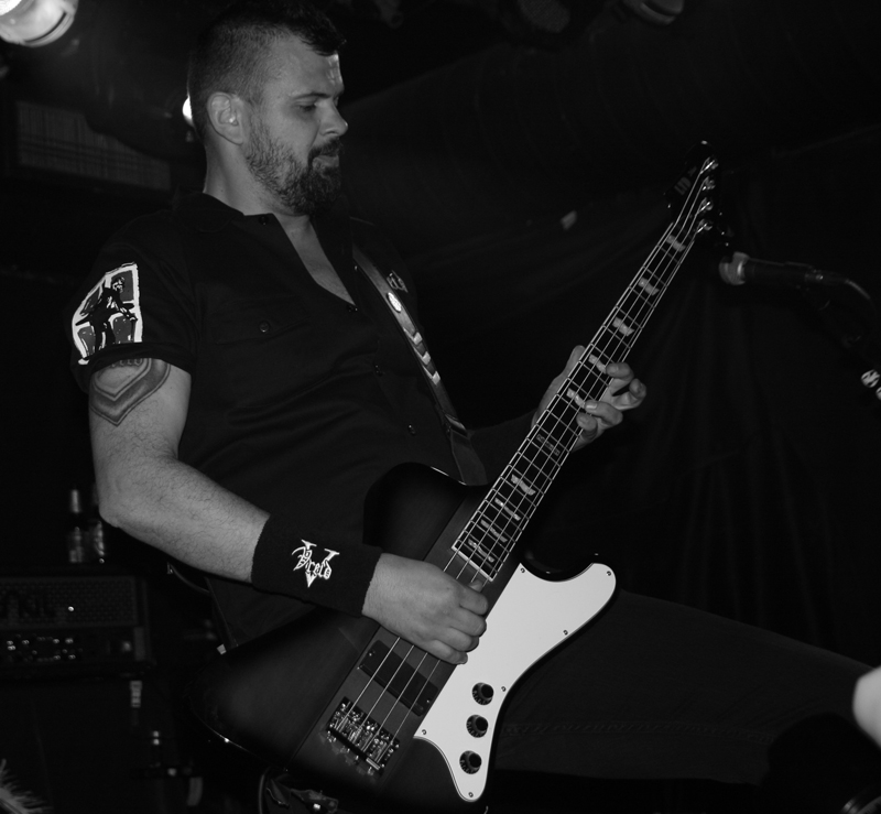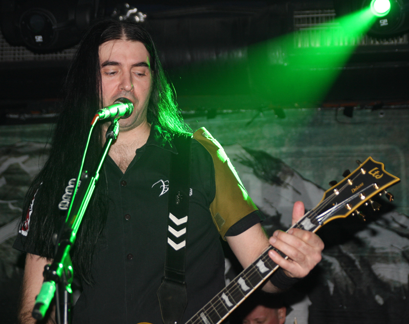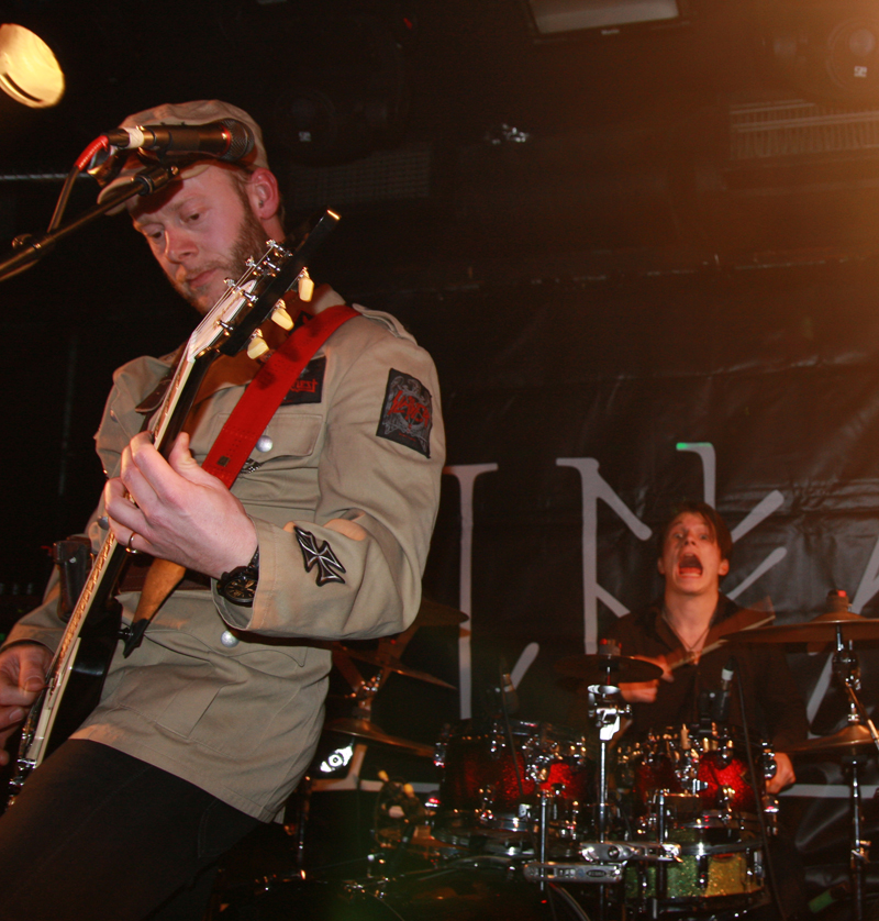 After this it was a bit of an anti-climax I’m afraid and it was a much emptier affair as quite a few seemed to leave. Vreid simply playing their somewhat workmanlike craft just couldn’t follow such a mental performance and they really should have been supporting in my mind.  The band have been incredibly good to us and are no strangers to London and I feel quite shitty in saying it but despite seeing them on various occasions and at least giving their albums the once over they fail to stir anything in me. Not that there is anything wrong in what they do, they are a tight unit and dynamic force on stage and their set starting off with the ragged duo of ‘The Ramble’ and ‘The Reap’ both from new album ‘Welcome Farewell’ should have won me over but their pitch black dynamics just did not get through. I certainly appreciated the way they simply flung themselves into things on stage with a massive salvo of drum beats from Steingrim who thundered through the set in a blur at the back but this is one of those bands that once a song has finished I just forget it Their brand of black death and thrash mixed up does go down well with others here though and I am certainly alone. There is something a bit Voivodian about some of the swirling guitar work and the harsh grating vocals from singer Sture are thick and gravid. Green and sharp bright white lights illuminate the stage and this band unlike the others have much more freedom to move around in. The Reap has a bounce laden chug about it and the cleaving mid paced intensity cuts a rugged furrow through things compelling many to head-bang.