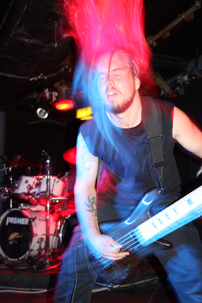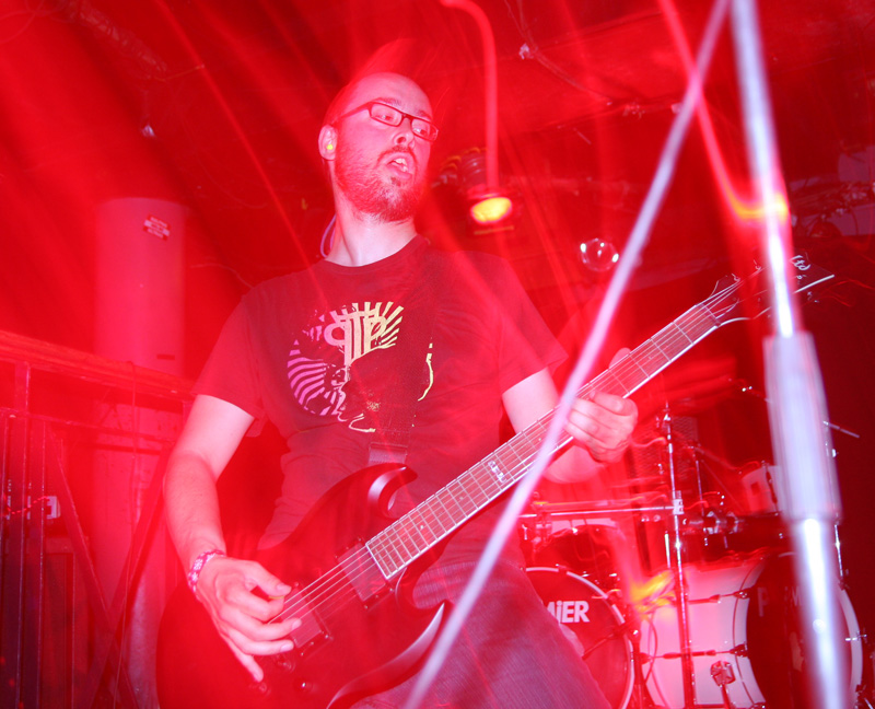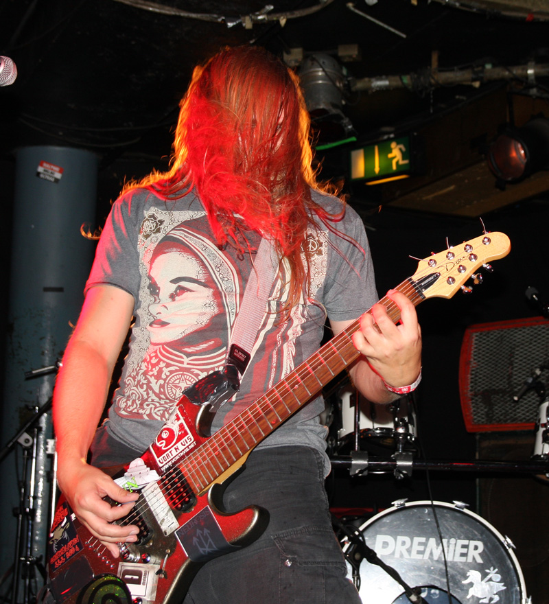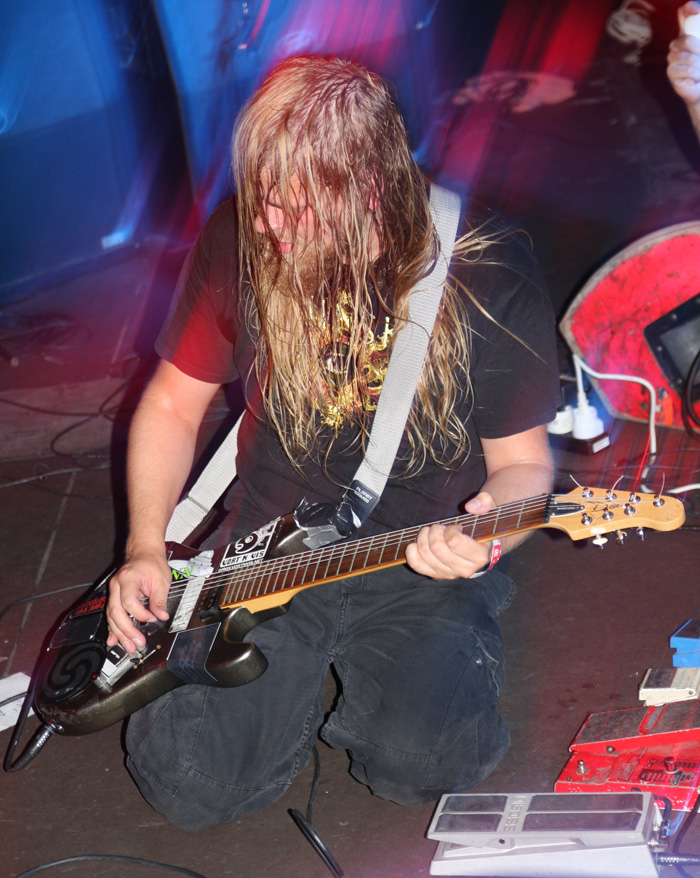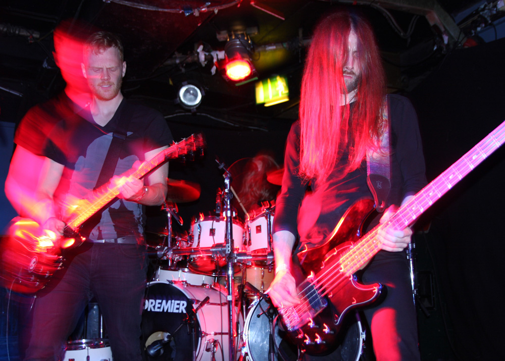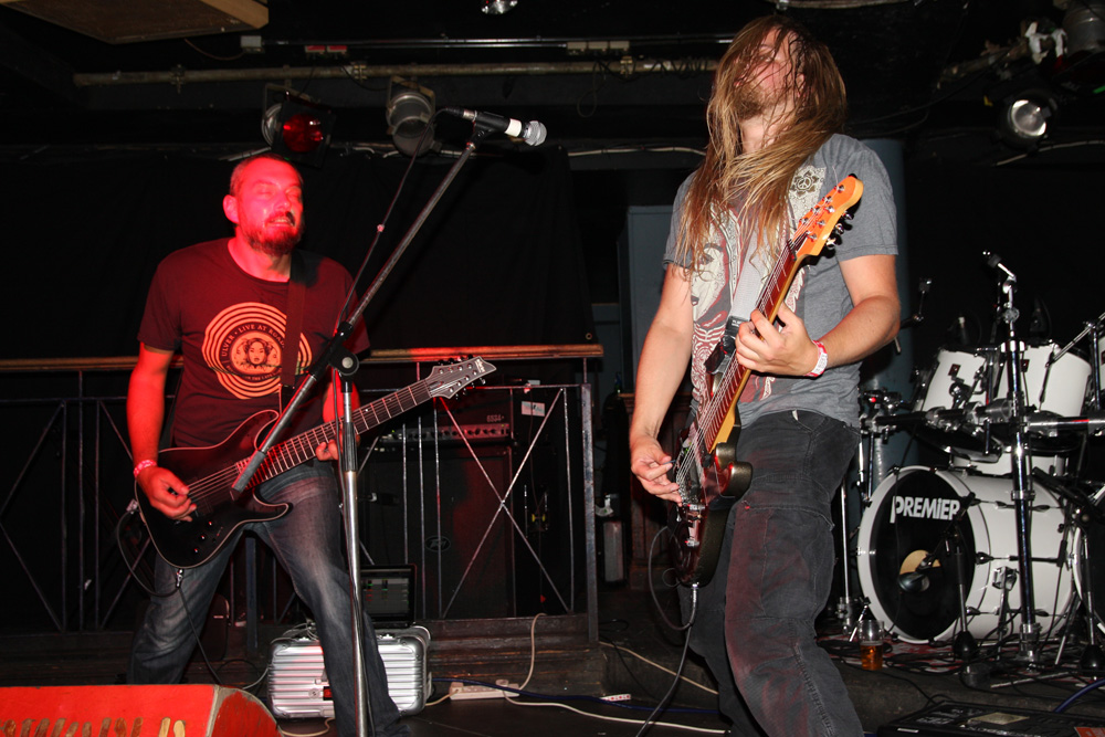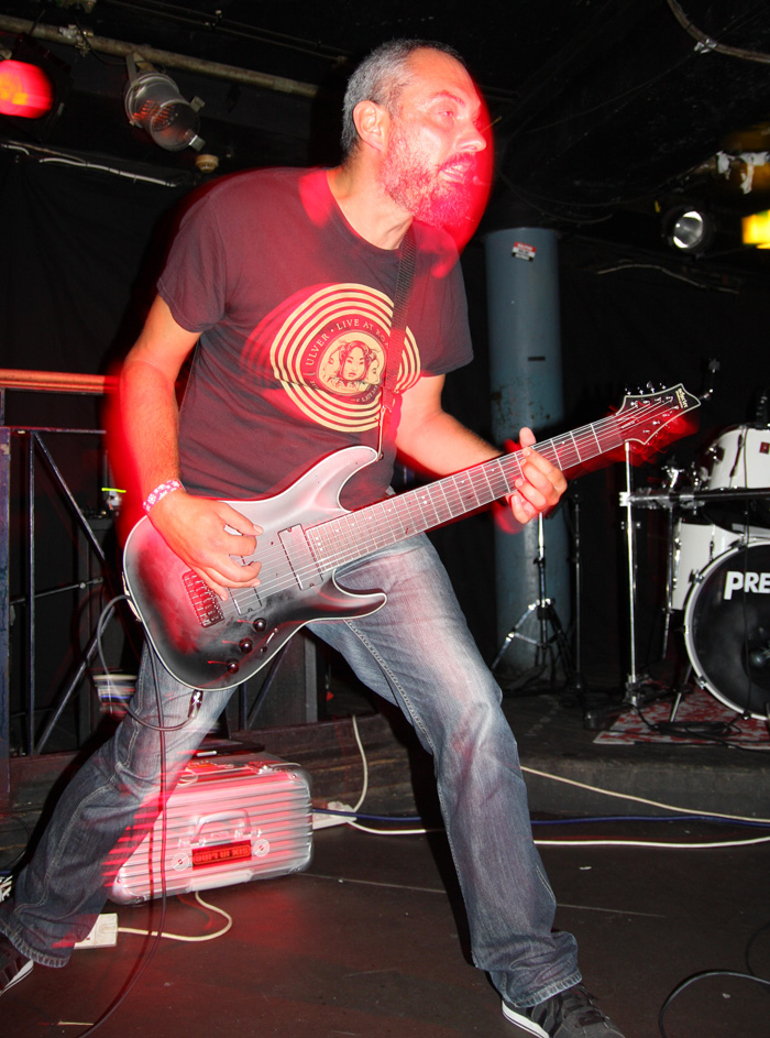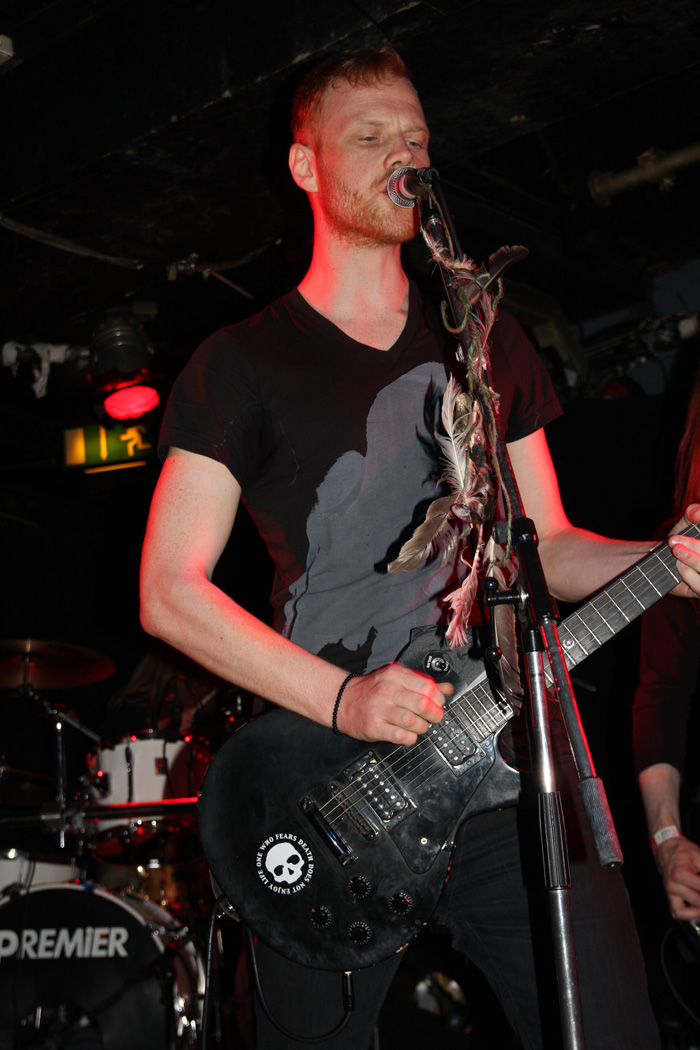 It was still belting it down and we could only be thankful that our musical tastes had us inside rather than in a muddy field at Reading. Kontinuum from Iceland naturally know well what extreme weather is like and it was nice that they had come over to give us a dose of their ‘Earth Blood Magic’ or so I at first thought. There were no less than five band members filling the stage and attention was drawn at first to the feather covered microphone stand of singer Birgir Thorgeirsson. It was odd and we wondered what sort of statement they were trying to make although someone pointed out that perhaps they had just slaughtered a puffin! As they strode off with an angular post rock sort of noise with sharp guitar tones and layers of guitar effects we pondered where everything was going. Again this really suffered vocally and it was down to the muscular music to win us over. Unfortunately it was around the second number that it struck me that musically they were pretty much playing by numbers and joining the dots. Although this was fast and furious at times it was really dry of any atmosphere garnering little more than polite toe-tapping by those watching. It left me pretty much numbed as songs seemingly went through the motions and left me completely unengaged. As much as I tried and indeed I watched the whole set, there was little I could have said about it after the event without having written notes as it was just unimpressionable leaving me with the feeling that every bloody university in mainland Europe probably has their own band playing in just such a style.