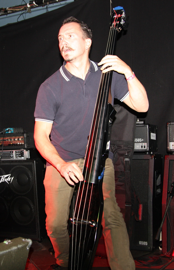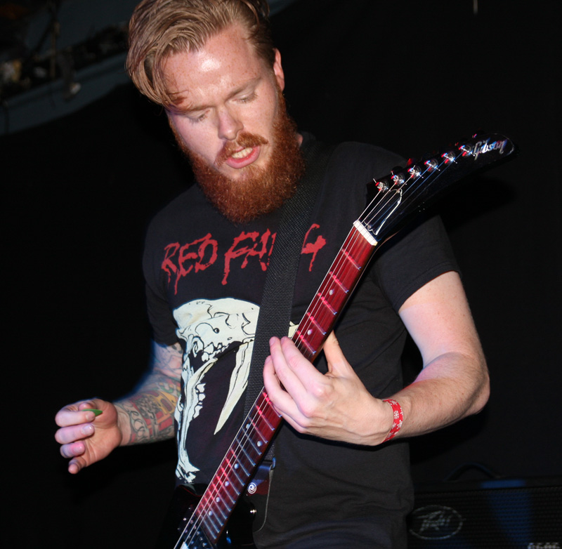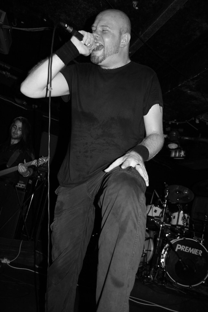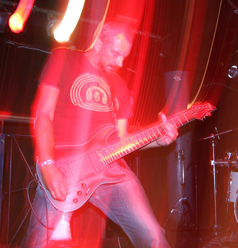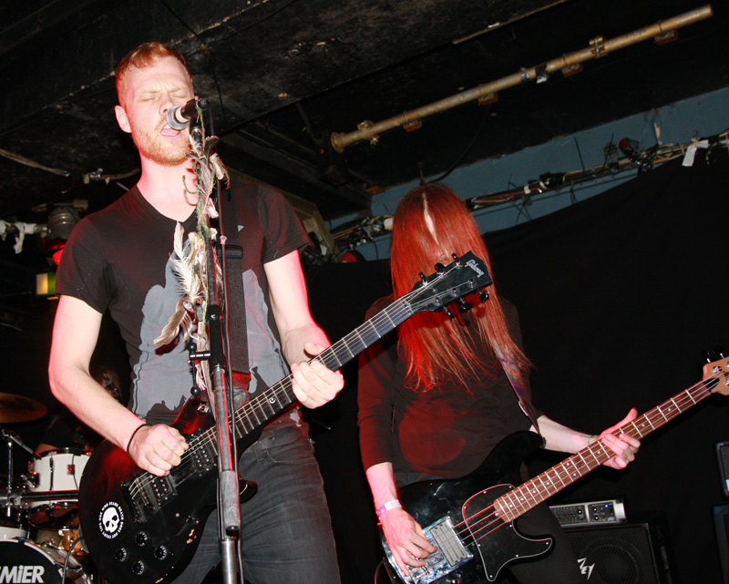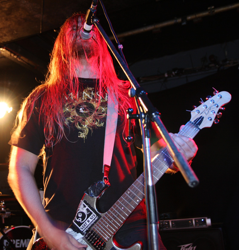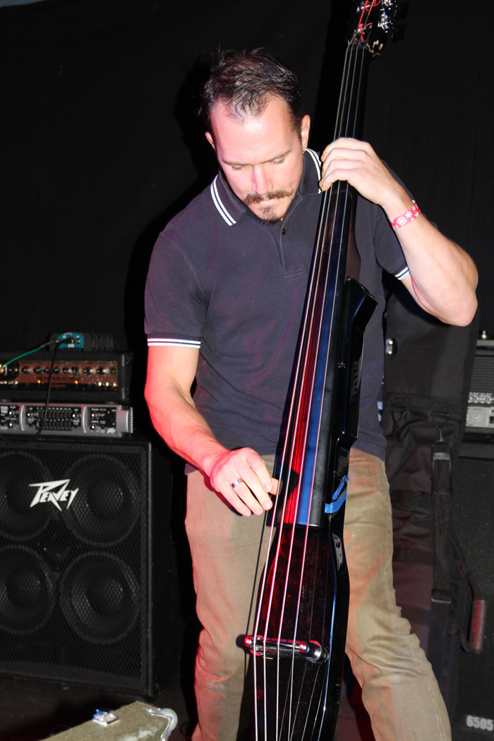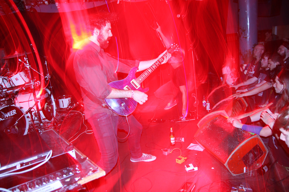 It was still belting it down and we could only be thankful that our musical tastes had us inside rather than in a muddy field at Reading. Kontinuum from Iceland naturally know well what extreme weather is like and it was nice that they had come over to give us a dose of their ‘Earth Blood Magic’ or so I at first thought. There were no less than five band members filling the stage and attention was drawn at first to the feather covered microphone stand of singer Birgir Thorgeirsson. It was odd and we wondered what sort of statement they were trying to make although someone pointed out that perhaps they had just slaughtered a puffin! As they strode off with an angular post rock sort of noise with sharp guitar tones and layers of guitar effects we pondered where everything was going. Again this really suffered vocally and it was down to the muscular music to win us over. Unfortunately it was around the second number that it struck me that musically they were pretty much playing by numbers and joining the dots. Although this was fast and furious at times it was really dry of any atmosphere garnering little more than polite toe-tapping by those watching. It left me pretty much numbed as songs seemingly went through the motions and left me completely unengaged. As much as I tried and indeed I watched the whole set, there was little I could have said about it after the event without having written notes as it was just unimpressionable leaving me with the feeling that every bloody university in mainland Europe probably has their own band playing in just such a style.