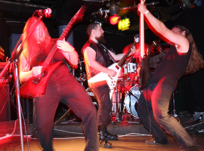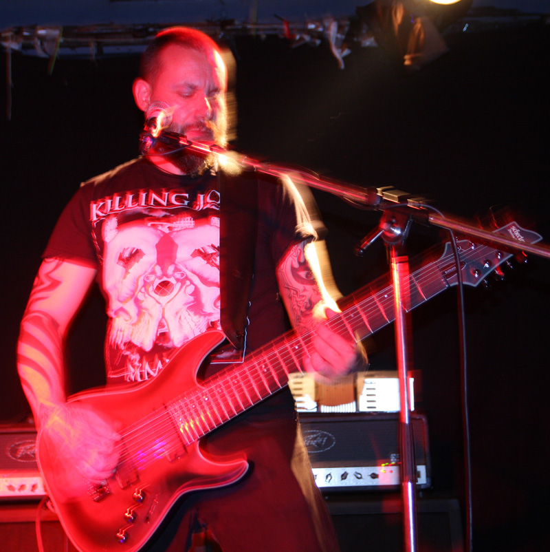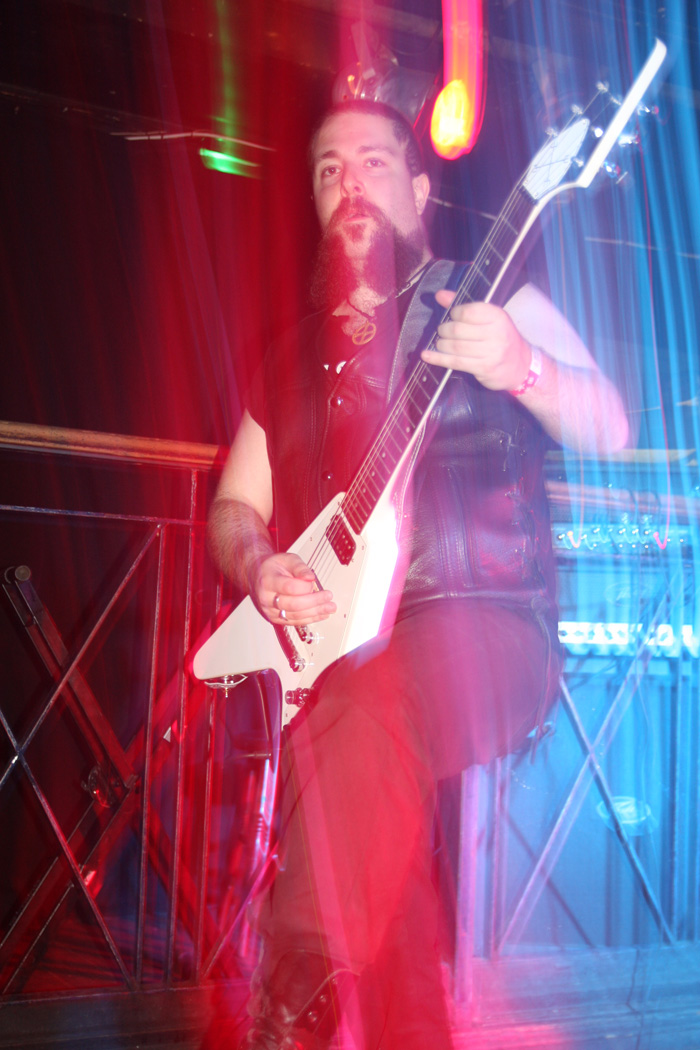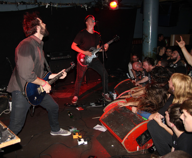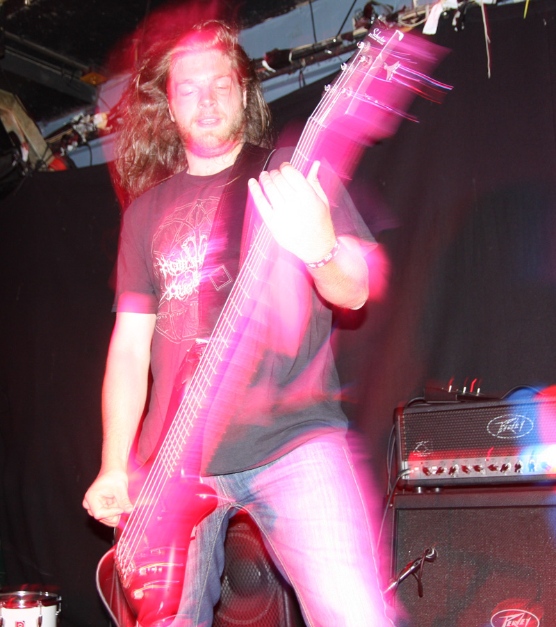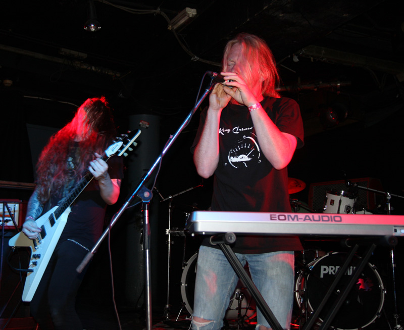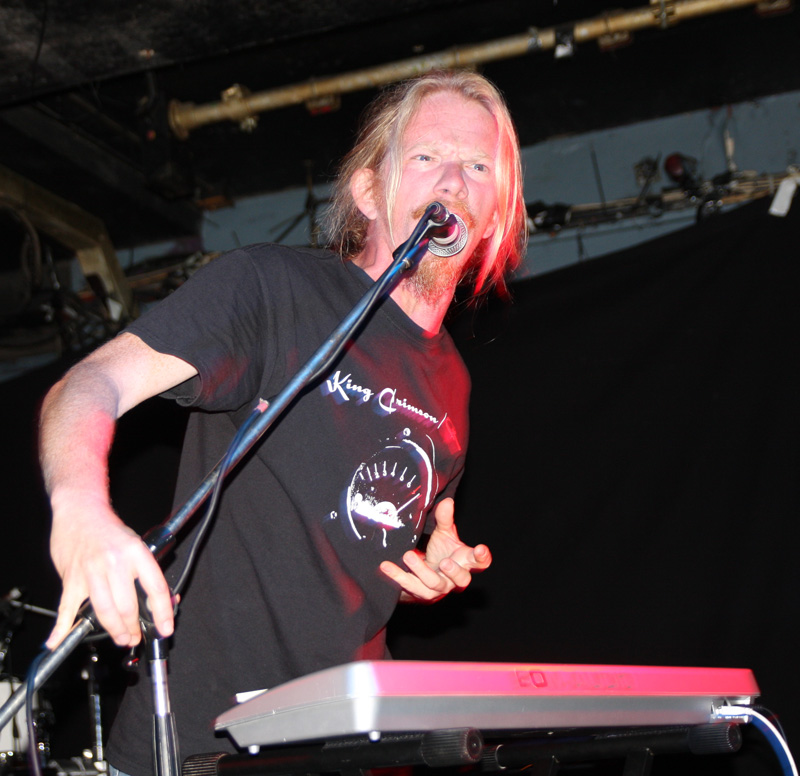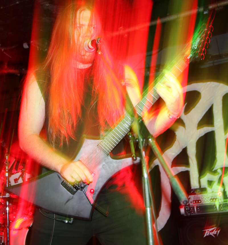 It was still belting it down and we could only be thankful that our musical tastes had us inside rather than in a muddy field at Reading. Kontinuum from Iceland naturally know well what extreme weather is like and it was nice that they had come over to give us a dose of their ‘Earth Blood Magic’ or so I at first thought. There were no less than five band members filling the stage and attention was drawn at first to the feather covered microphone stand of singer Birgir Thorgeirsson. It was odd and we wondered what sort of statement they were trying to make although someone pointed out that perhaps they had just slaughtered a puffin! As they strode off with an angular post rock sort of noise with sharp guitar tones and layers of guitar effects we pondered where everything was going. Again this really suffered vocally and it was down to the muscular music to win us over. Unfortunately it was around the second number that it struck me that musically they were pretty much playing by numbers and joining the dots. Although this was fast and furious at times it was really dry of any atmosphere garnering little more than polite toe-tapping by those watching. It left me pretty much numbed as songs seemingly went through the motions and left me completely unengaged. As much as I tried and indeed I watched the whole set, there was little I could have said about it after the event without having written notes as it was just unimpressionable leaving me with the feeling that every bloody university in mainland Europe probably has their own band playing in just such a style.