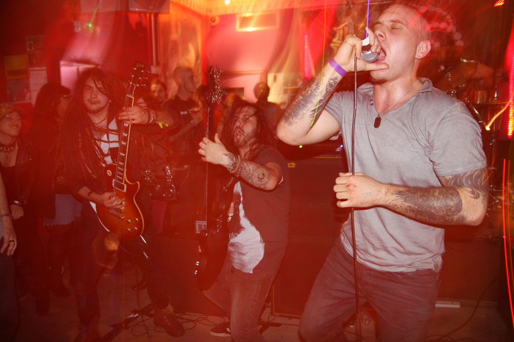 Now I have heard a buzz about local band Driven from others that had caught them at higher profile (could hardly be lower) shows such as Hard Rock Hell. Being from just down the road no doubt helped them absolutely ram the place to the rafters and I guess consolidate their headlining position. With it and hardly room to swing a cat they still managed to blaze away and come through things with a dynamism that surely deserves seeing them on much bigger stages. Songs like The Fool had good bouncy bombast and some groove laden guitar chugging that was pretty damn infectious. Singer Adam injected both soulful clean harmonic vocals with more gravelly throaty snarls and up close and intimate like this it was a real in your face experience with the violent segments demanding head banging.