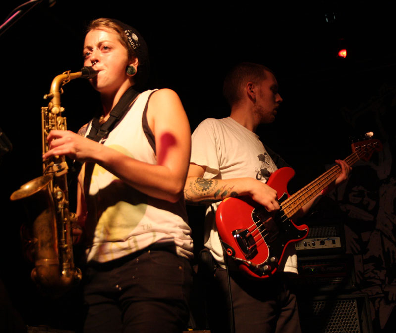 When we finally got in due to the Noah’s Ark security letting in two by two at a time (frankly security were a pain all night and completely wrong for the event) the first support band Spanner described as ‘local militant ska punk’ were in full swing. Plenty were moving and grooving to the band’s skanking beat and unlike London shows this was an audience who were partying from the off until they dropped.  A fair few were doing that due to beer spillage (at £4 a pint an expensive game) and during the course of the night there were some spectacular face skids on the floor. The band put on an exuberant, fast and manic performance with a political backbone about it along with some trumpet flurries and even a spot of tin whistle. Think of an agit-punk ska clash between the likes of early Chumbawamba, Pain, Blaggers ITA and the Dropkick Murphys and you would be in the right sort of place. Put together with an up for it home crowd the set flew by in a heady fashion that was over far too quickly.