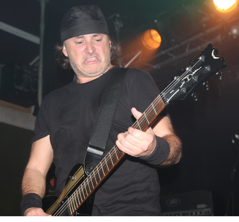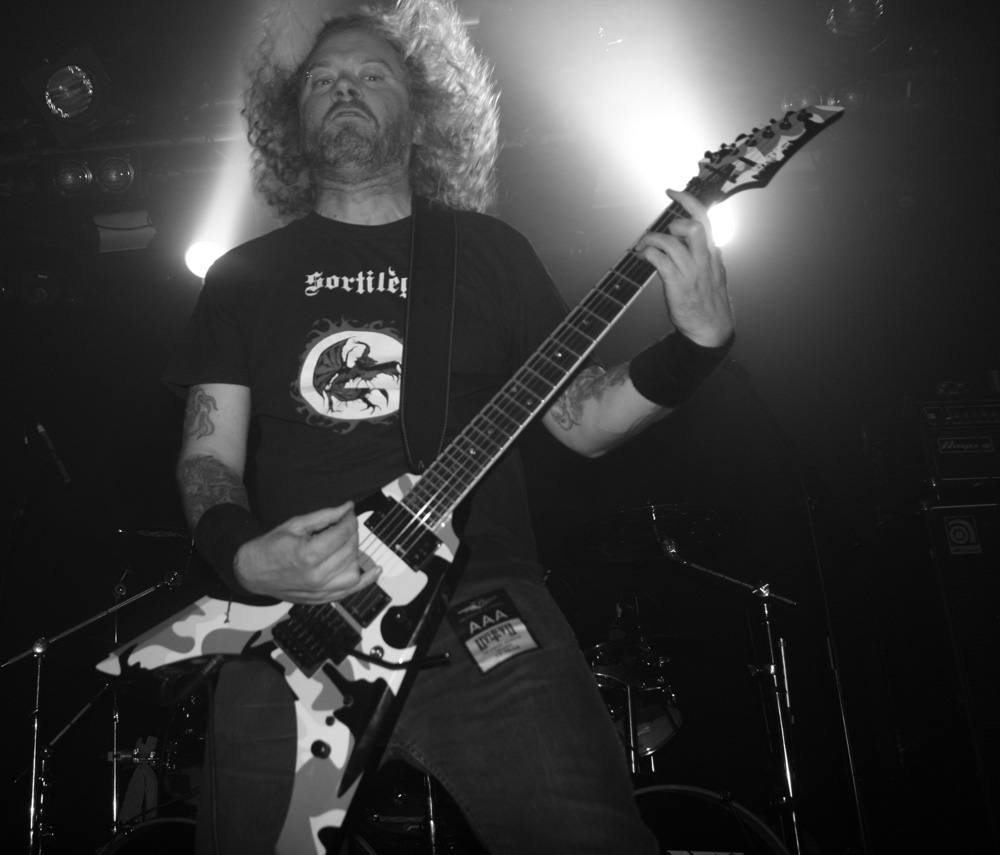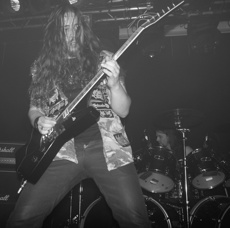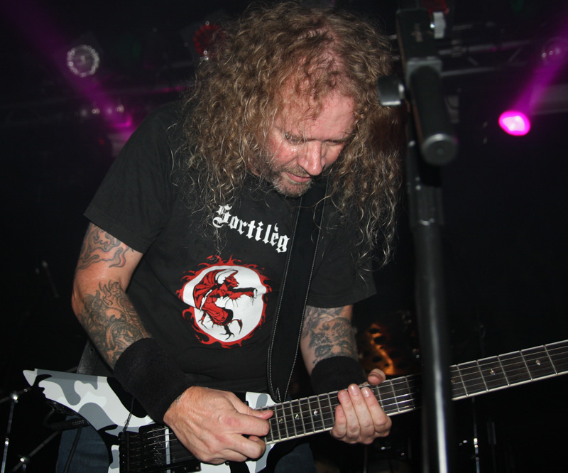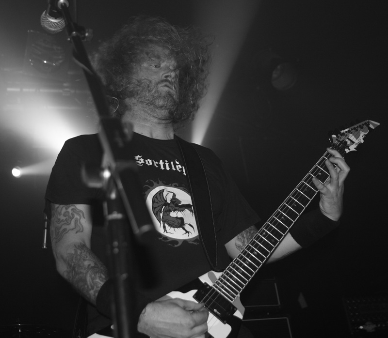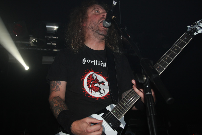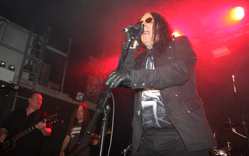Recent interviewees and scorers of a whopping 10/10 on this site for new album The Malefice, Pentagram Chile were not only one of our main draws of the day but it seemed with the rapidly filling up venue quite a few others too. Around since 85 and it being their first album we hoped it would be good and had high expectations for them live. Anton Reisenegger and his assorted Criminals did not let us down in the slightest either as they flew into their ‘Spell Of The Pentagram’ getting me one of the many free showers of beer I received over the weekend in the photo pit. Whereas all the earlier bands had a 35 minute set which was just right (certainly considering how much material some had at their disposal) this was a much longer set and the band made all of it count. By the time I fell out of the photo pit to ‘Temple Of Perdition’ seeing it was hemmed in throughout the front of the venue there was only one place really to go, and like an eager teenager I found myself compelled to the pit to head bang like a loon. The pulverising death metal was solid and thick and sounded excellent, the drumming thudded away and opening album cut ‘The Death Of Satan’ was thankfully not prophetic for the headliners who were waiting in the wings. Rapid fire drumming was precisely honed and it was a neck snapping display taking in many of the songs from the album which everyone seemed to know well. By the time they were drawing to a close a much needed beer and some calmness was necessary but with a final salvo of ‘Demonic Possession’ taking things right back to 1987 we were going to have to wait a little while longer before staggering out for some fresh air and falling over.