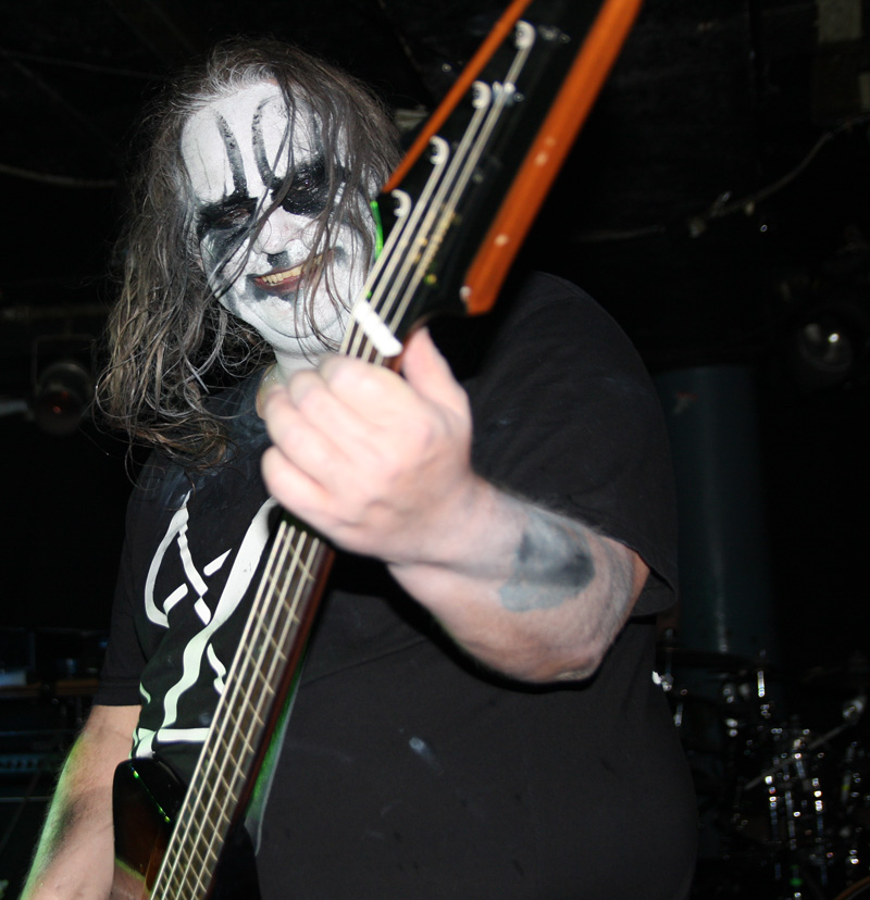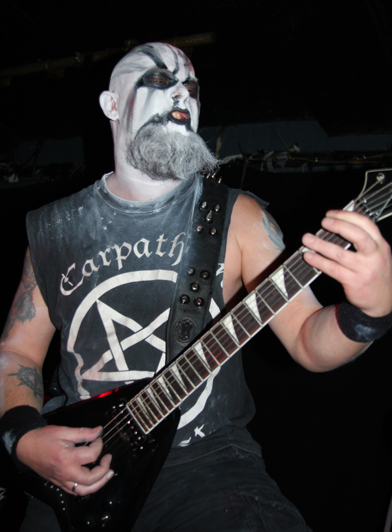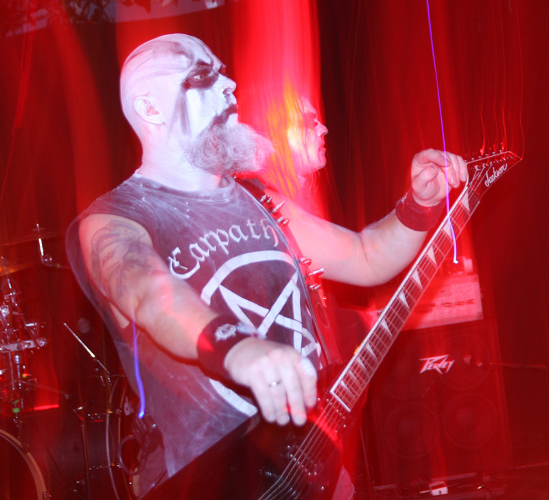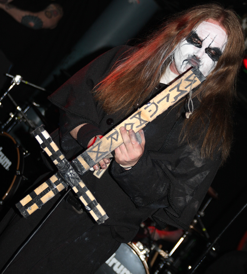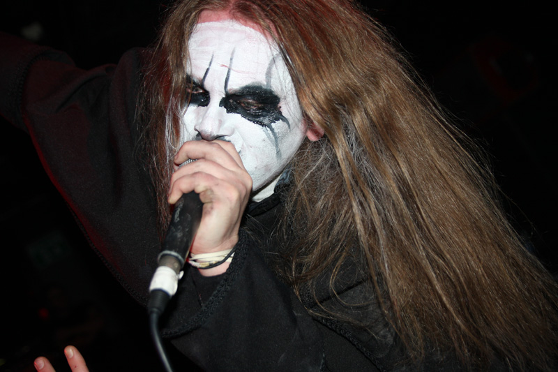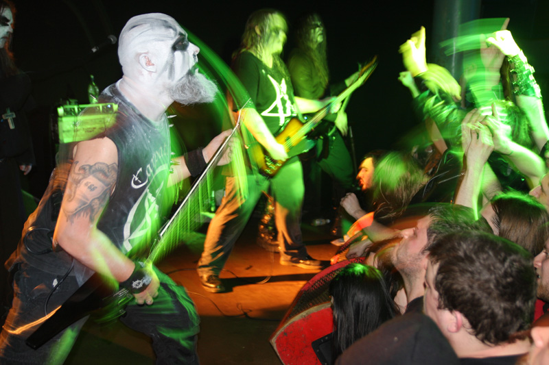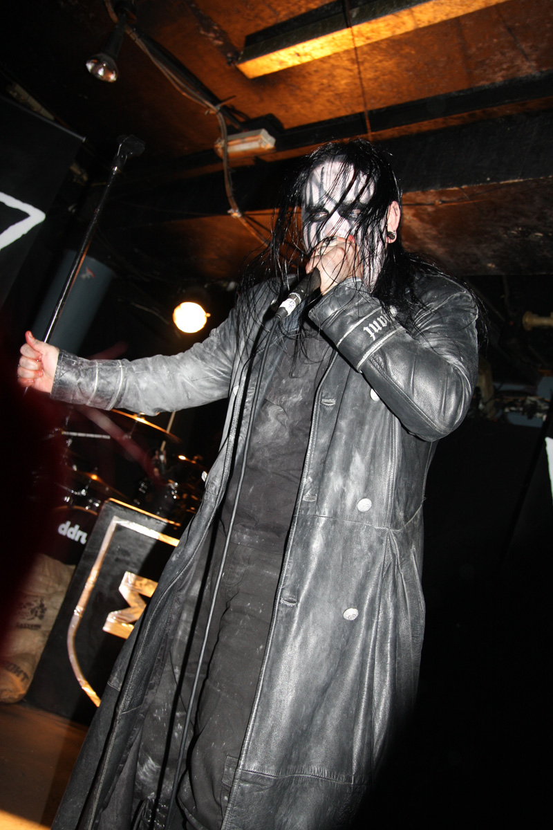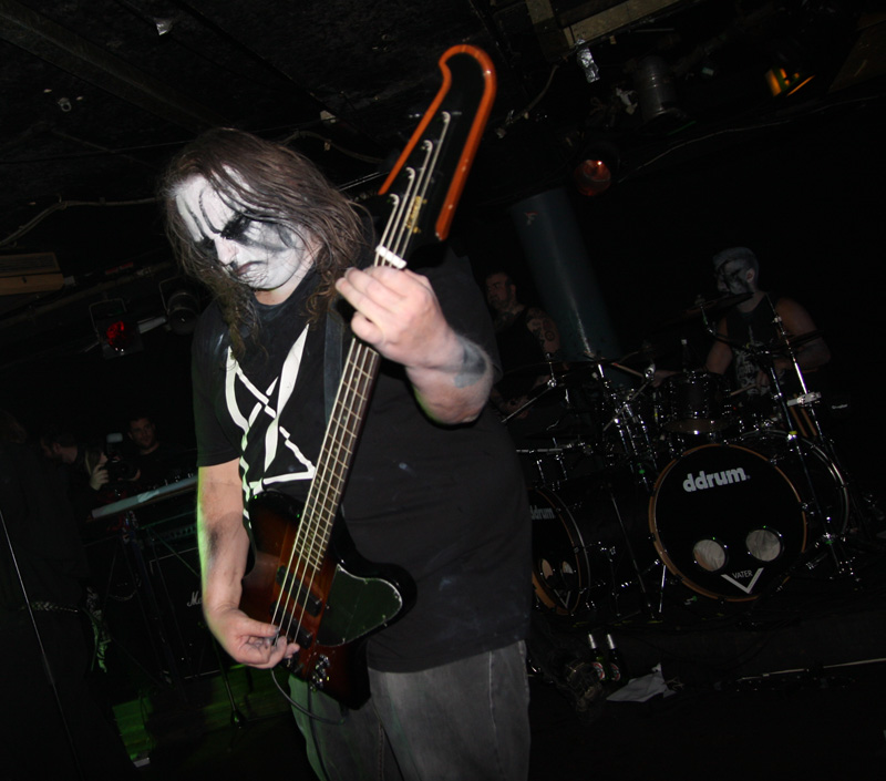 I guess any of those grim “no fun in black metal” notions have to be wiped off your face when it comes to Carpathian Forest. They are a hoot you cannot deny that even when they are singing about the gloomiest of subjects possible. Tonight even though they have for various reasons not graced us for some time (2005 looking at my past live reviews) it’s like they never went away and the crowd is well up for reacting off them and carnage ensues straight away. The band have completely gone to town on the corpse-paint but all eyes are naturally drawn to Nattefrost who is wearing a monks habit (and it’s best not to ask what he was wearing under it) and waving around an inverted cross with runic designs on it like a demented madman. Musically from the opening foul sermon things were suitably Frostbitten and did not stand still for a second. I had a pre-gig crash course of reacquainting myself with several albums prior to the show castigating myself for how long since I had played them and was pleased to hear that out of what I wanted them to play ‘Suicide Song’ was quick to be unsheathed. No chance of anyone topping themselves during this but getting beaten to death down the front was a possibility.