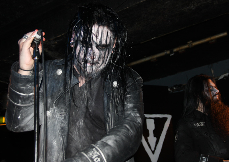 Well there were no worries about this one being empty and there was already a queue at the doors well before they opened and the few remaining tickets were quickly snapped up. For once the first support band were playing to an already packed venue and Eastern Front seemed to relish it as they flung out their war torn anthems in a destructive rage. After an austere orchestral intro they unleash their hellish overtures and those at the front quickly get into the battle fury behind them as the venue literally seethes, something it doesn’t stop doing for the whole of tonight’s show. The drum battery is fearsome and Nagent’s screams bristle with hate. The show seems a bit brighter than normal although the lighting is kept down on the whole adding to the grim atmosphere as the leather clad band look like they have crawled out of the rubble after a shelling. There is more than a hint of pathos about songs such as Motherland, this is not a band revelling in the glory of war but one who convey the doomed futility of it all in their songs. This comes across amidst speedy bursts of black barbed violence and razor wire guitars and high pitched yells and gruffer barks from the singer. Things seem particularly potent tonight and although I have seen the band many times through various line-up changes this was probably the busiest show I have caught them at and no doubt this added to the intensity. They only had half an hour building up to the inevitable finale of Blood On Snow and it seemed to fly past in a short sharp fiery sermon of death. Hopefully 2014 should see the unveiling of some new material.