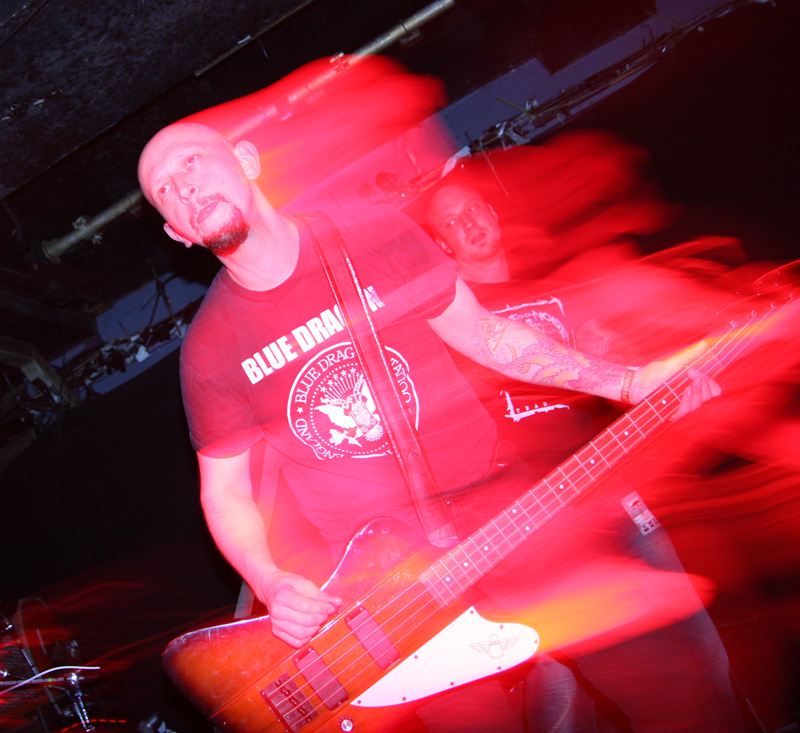 The gloomy sax and depressive strains of some of the songs on the albums were not something the band do live, they just go for the throat and punish with their fastest examples of Norske Svart punk. After suffering plenty of bruises it was best to go and witness things from the side of the stage as they were all lined up Blood Pervertor closest and Vrangsinn over the other side of the stage as people tried to clamber on it and dive before being unceremoniously taken round the back for a ticking off. Morbid Fascination Of Death had the gnarly punk laden tumult at its grimiest and foulest. The band seemed to be bombing through things with little in the way of pauses. Again hopefully there is some new material in the works but tonight it was all about the old stuff from the short sharp stabbing in the face of ‘Knokkelmann’ to the charmingly entitled Shut Up There Is No Excuse To Live’ and their self-titled early number going right back to 1992. There was even a burst of harmonica somewhere amidst it all but the whole set was flying by in a blur.
