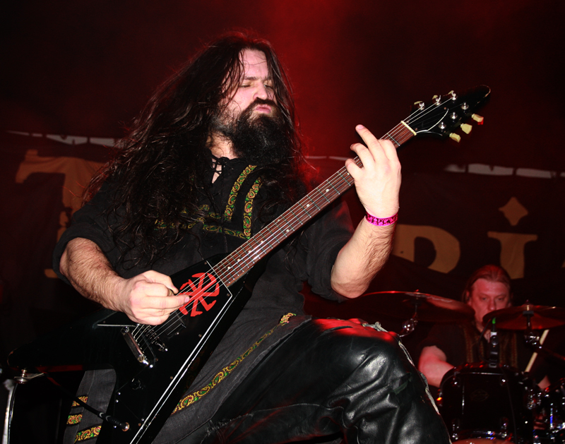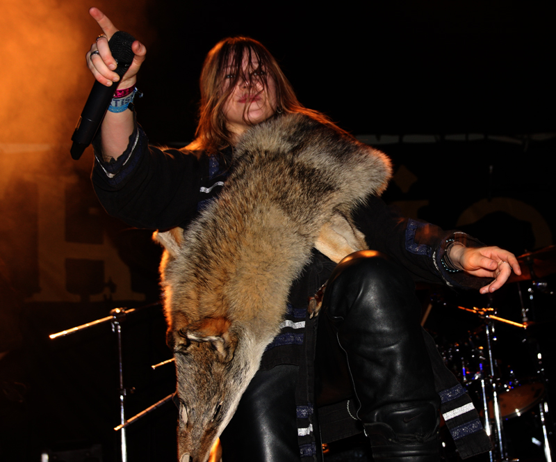 Due to a combination of early doors and meeting up with people, for once I completely broke my own rule of trying to make sure I covered all the support bands by walking in just as the second of them finished; apologies to Sound Storm and Coma. One band I was definitely not going to miss was Arkona having caught the Russian lot a couple of times in the past and loving everything I have heard by them. They really created an atmosphere in the busy venue before they came on by playing some traditional sounding music that sounded like it had come from the dark ages with a classical and folky feel about it. Although it was sombre in tone things quickly changed as the band led by the warrior front-woman Masha “Scream” Arkhipova invaded the stage and proceeded to kick up a storm. There was lots of activity on the stage with her taking the centre draped in a fox skin (which I have to admit was one stage prop I could have done without) a mad pipe player adding some traditional parts as well as the more metallic likes of big bearded guitarist and bassist. Things flew by in a giddy blur with the likes of newer songs like ‘Arkaim’ wowing the crowd who were very quick to get into the rich atmosphere and stormy charge of it all.