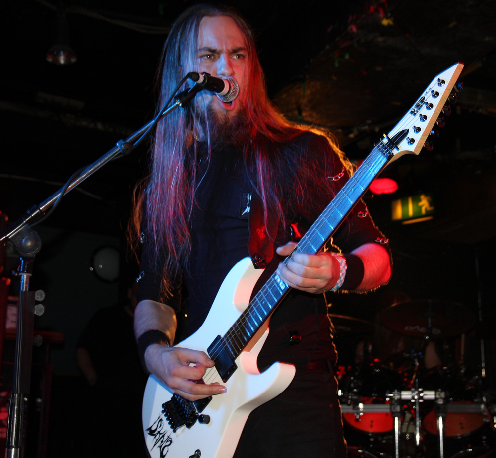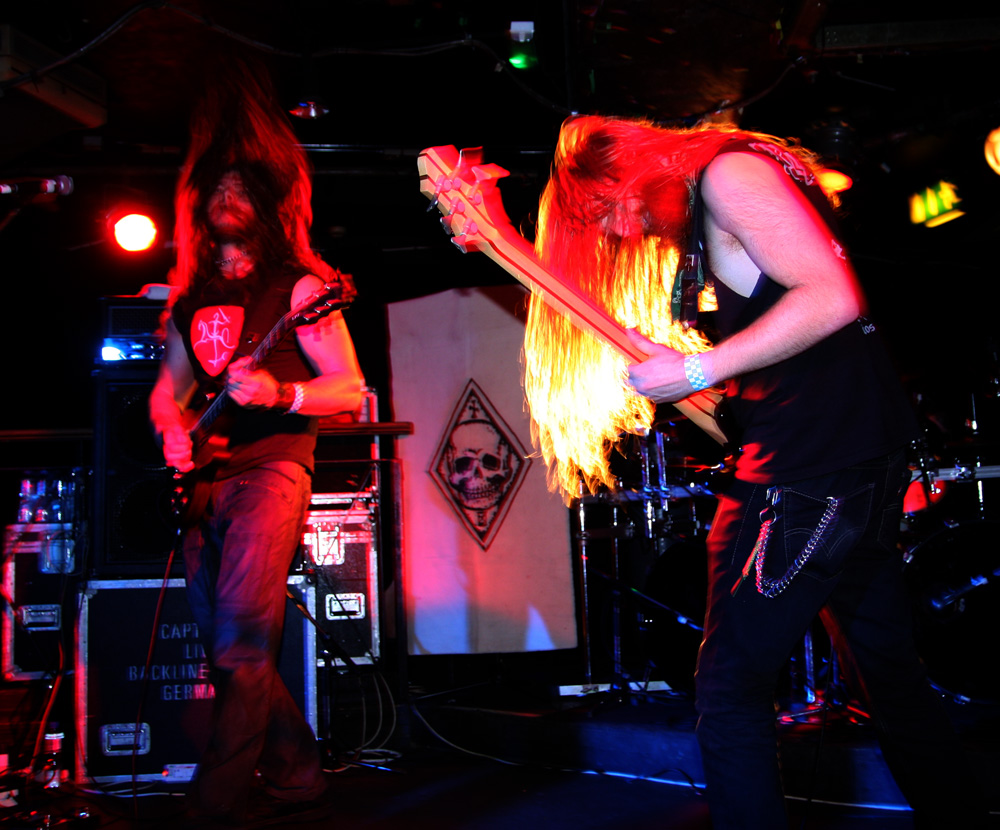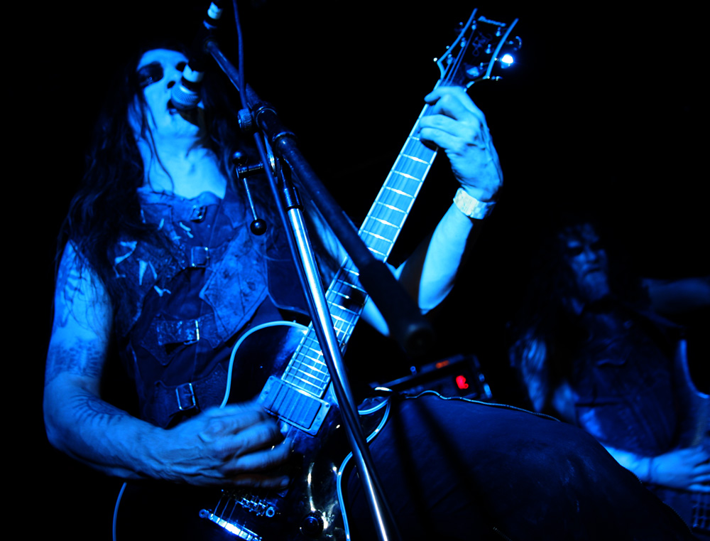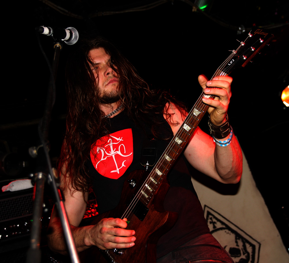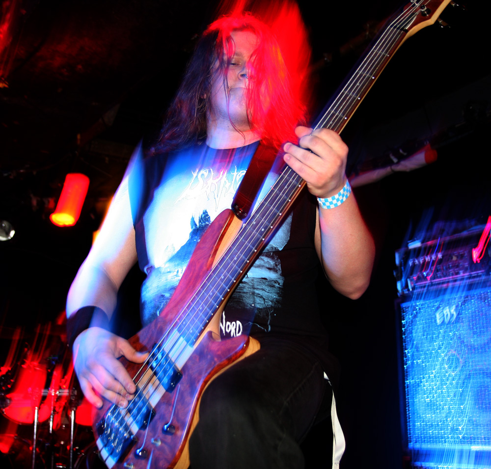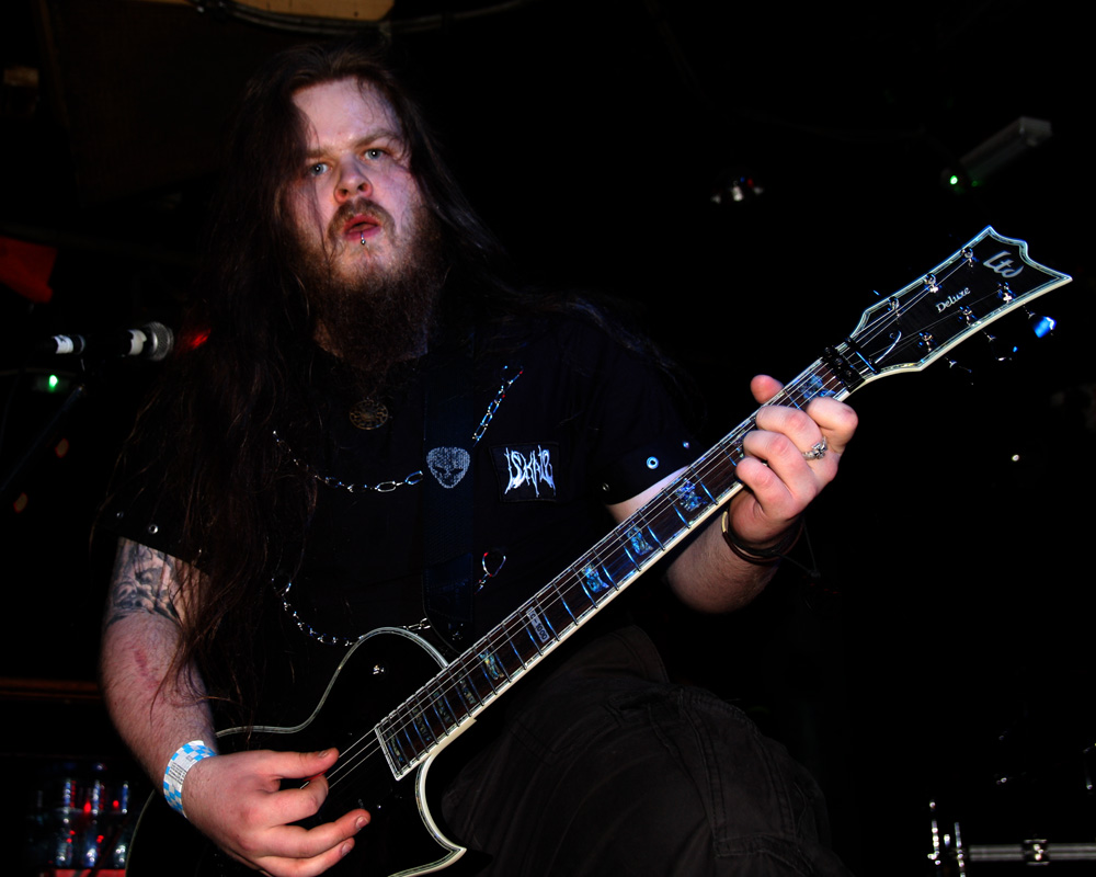 It is however thin on the ground as the first of four visiting acts take to the stage. It makes a change not having local supports and Iskald would have certainly been a lot higher up the bill if there had been. This Norse band have been fairly active releasing four albums since 2006 with the latest ‘Nedom og Nord’ only having just come out. We are met by sharp, icy and sinuous fret work before a meaty drumming assault heftily collided getting those in the venue moving straight to the front. Iskald’s call pretty much commanded headbanging and they instantly felt like a perfect choice of support here as they dug in and cleaved away. Amidst this there was a sense of underlying majestic grandiosity as they played their self-titled number from that new album ‘Iskald.’ The coarse Norse vocal rasps bit in, the drums rolled and thundered and it took off at a cracking velocity. They had but half an hour to make their mark but managed to do so as things spiralled away with giddy dexterity and a good layered sound with everything defined well in the mix. ‘Dommedag’ was a bit jauntier before it settled into a mid-paced atmospheric affair and on the strength of this it is hoped that the band will get the chance to come over and play a few more than just five songs in the future.