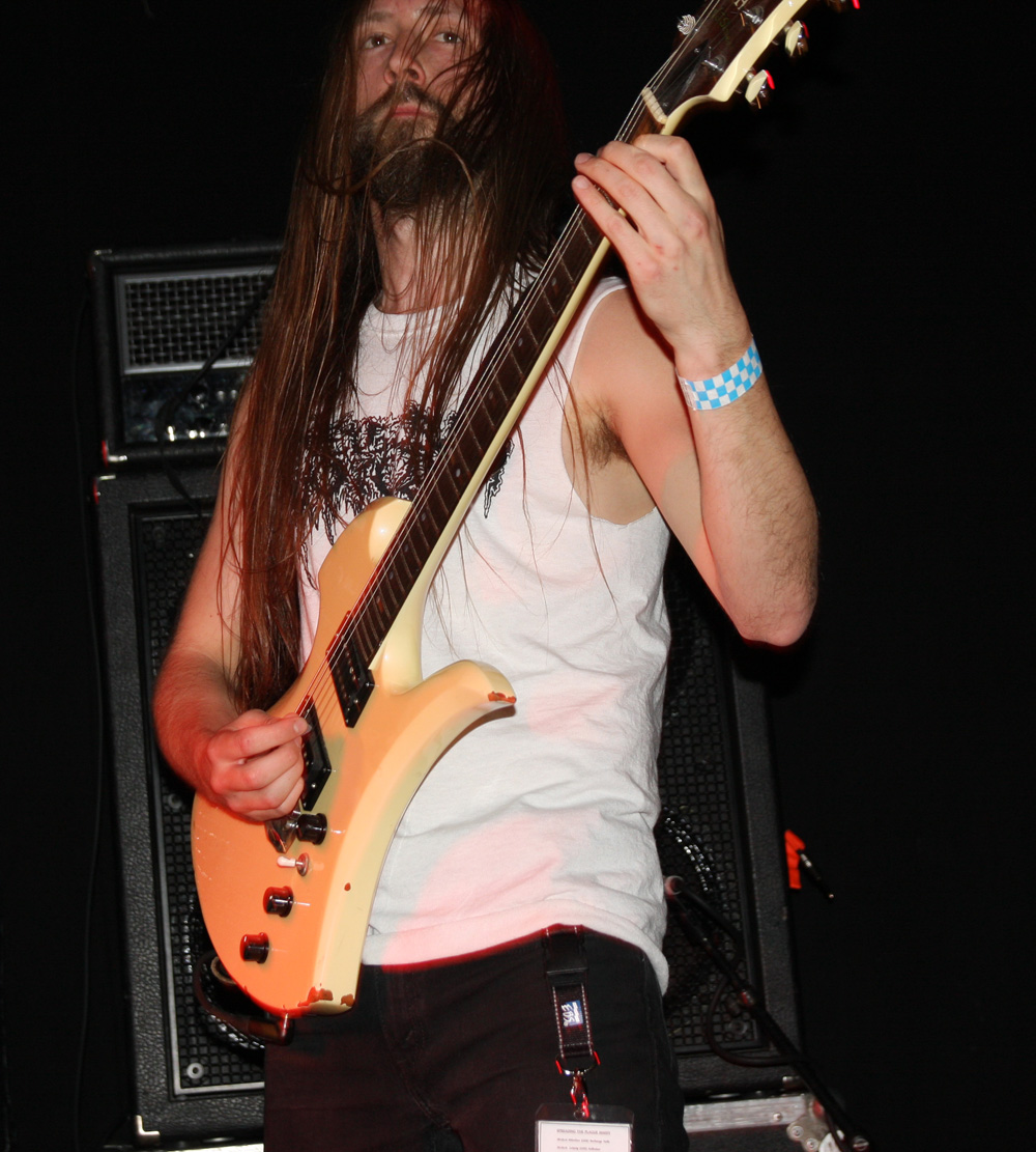I had checked out a bit of Velnias before coming along today and had a good idea what to expect from the band hailing from Boulder Colorado. Long songs which had been likened stylistically to Wolves In The Throne Room. However nothing could have quite have prepared me for just how good they were live. It was like the equivalent of chasing a massive storm. The trio at stage front were twisting into unnatural shapes almost bowed down by the elements along with the contorted sound they were wringing out of their instruments. Huge barrages of invigorating layered sound which was weathered and windswept swirled out the speakers like a tornado. Songs, and debate is open to whether they played two or three in their 30 minutes, were completely involving and they decimated as they tore through us. I was reminded a fair bit of the aforementioned along with the barrage of Altar Of Plagues here and loved every second of the assault. They played in a fashion that seemed almost effortless and mixed up the huge peaks of sound with moments of acoustic and introspective fragility. There’s a touch of doomed atmosphere and it’s an apocalyptic one at the heart of this and it has those watching almost transfixed to the spot as they cling on to the vortex of sound. Bleak down parts allow a quick breather before the stifling storm bursts once more, bruising and tearing us apart, musical intensity in perfect alignment. This felt like a special and rather unexpected set, one that will linger in the memory for time to come.