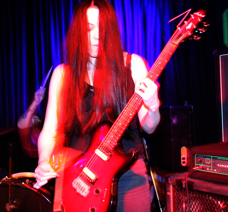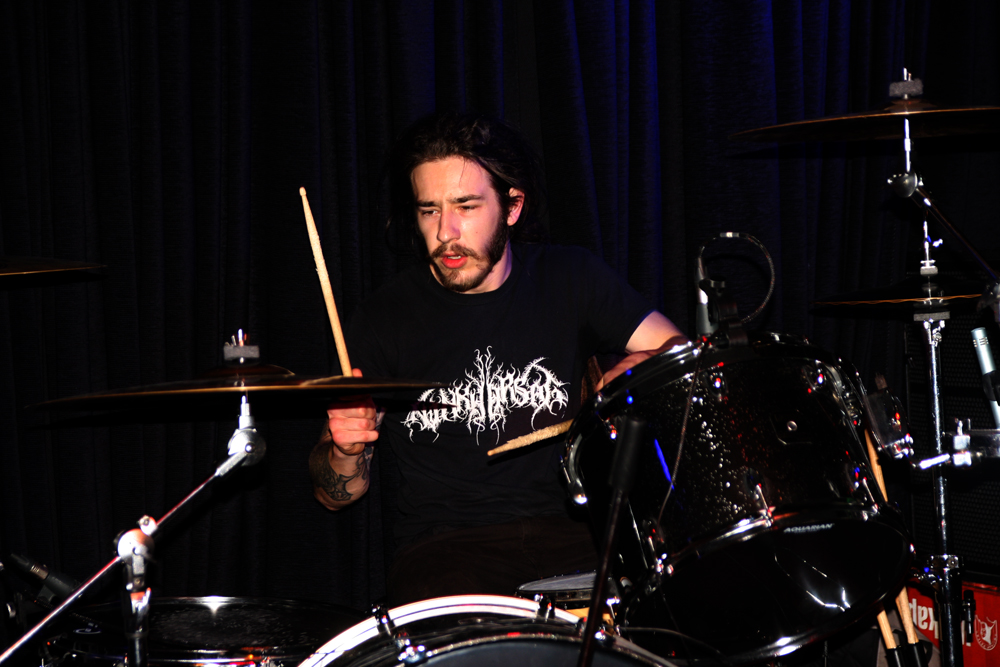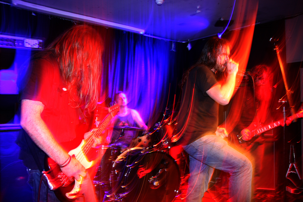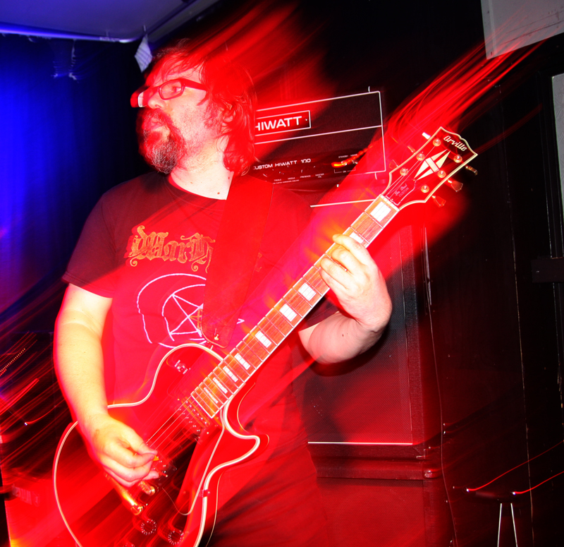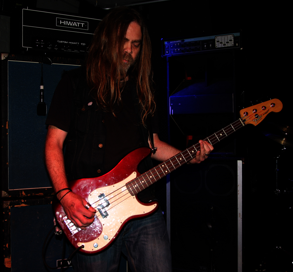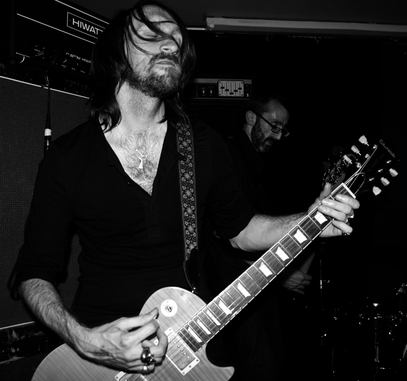 I didn’t give Coltsblood the best of rides last time I reviewed them, it really was a case of wrong gig and wrong venue as far as I was concerned. I had been told they were much better suited to a more intimate place and was more than happy to give them another try. What a difference. The heaviness was immediate and so was the resulting deafness as bass and drums literally trembled out the speakers and gave us a good shaking. The vocals from ex Conan member John just top it off, angry and abrasive. Change in my pocket was jangling under the onslaught and I hoped nobody in here had false teeth as they were more than likely to end up swallowing them. This was a loud and powerful performance and the distortion behind it billowed out along with the fragrant smell of incense giving us sight, sound and smell all in an overloaded display as they took us further ‘Into The Unfathomable Abyss.’ Drummer Jay really thundered away and at times he did actually fire out some black metal style blast beats, something I must have overlooked last time. At times they slowed down to a near sluggish crawl but the seismic riffing courtesy of Jem quaked around rough and craggy vocals. The singer was giving it the best stone-age ‘just crawled out a cave’ performance but delicately noted were some of the more subtle underlying guitar parts too. A lone chord rings out and we are then slammed violently back into monolithic slabs of granite etched riffs. The effect on the audience was to leave most rooted to the spot, not moving but weathering the storm.