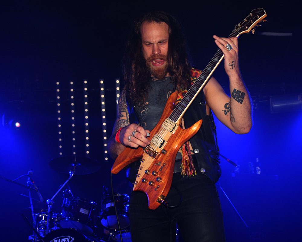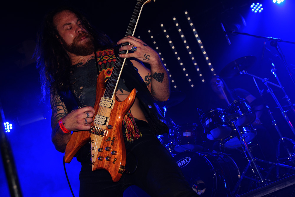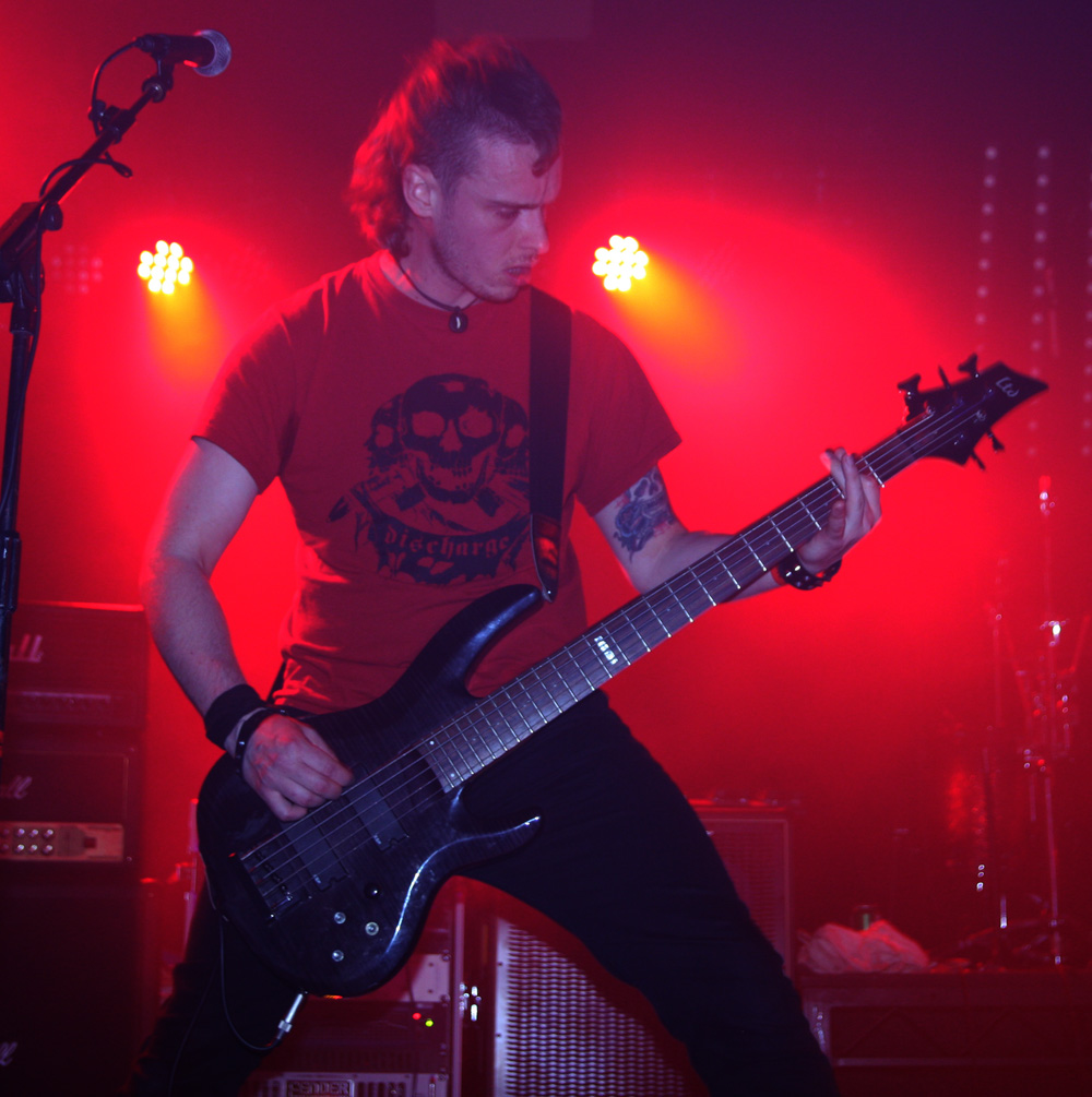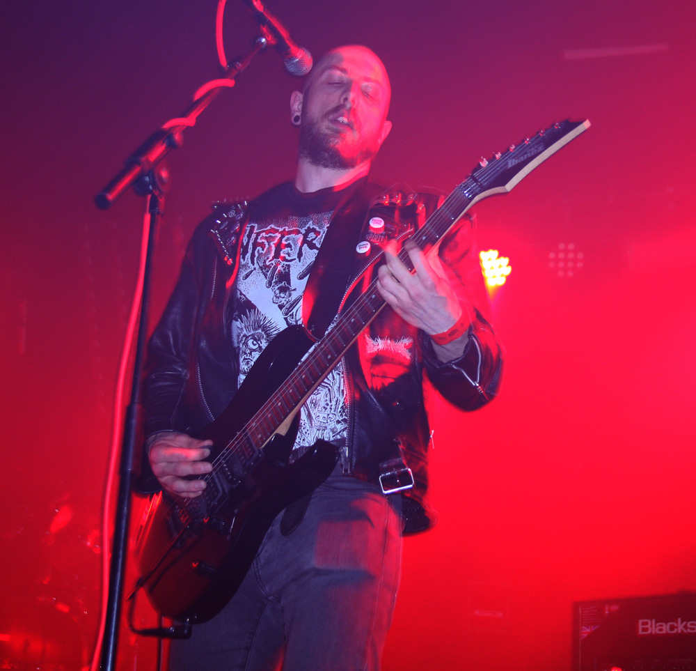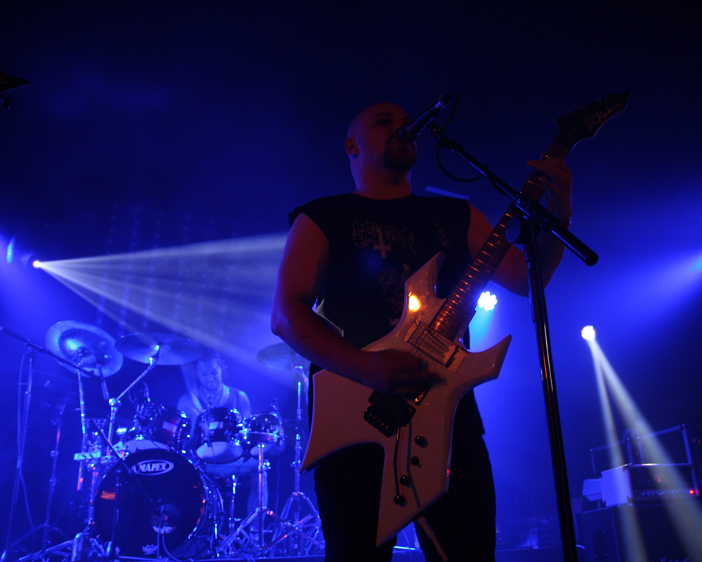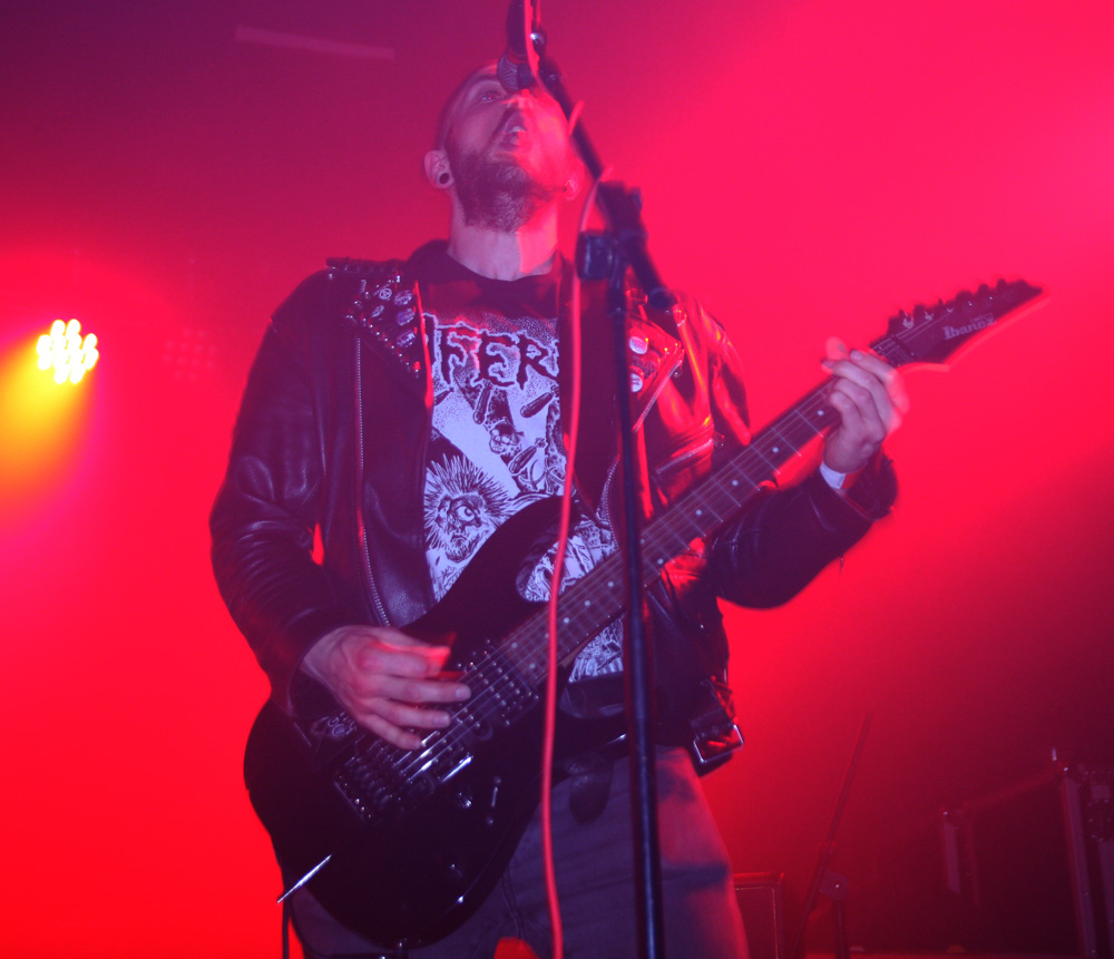 Like the openers Malthusian are still at the demo stage as far as recordings are concerned but that does not mean any hindering of quality. It starts with the caress of weighty doom, unsurprising as the band contains Mourning Beloveth and Wreck Of The Hesperus members in it. Guitars weep and it is cold blue and dead amidst the dry ice atmospherically on the stage. Then this storm breaks with churning, seething thunderous fury taking us into another dimension. It’s completely compelling and windswept as the craggy vocals join in and their ‘Plague Spoor’ is completely unleashed. It seems like they are playing effortlessly as they punish with a heaving lead-lined assault which sees the band fixed in position as they slow it down to a crawl. Shivering guitar parts intricately flail away and we are battered straight back into a virulent maelstrom. From doom to complete blackness this is a rigorous display of churning venom now, an epoch of Armageddon and with the front three all sharing the vocals the rafters were hit and almost toppled at levels that pretty much floored from the front to the back of the venue. The blue lighting was constant adding a malevolent atmosphere for which there was no let up. All that remained was the touch of cold death. If that sounds clichéd fair enough, for those of us soaking it up, it was anything but.