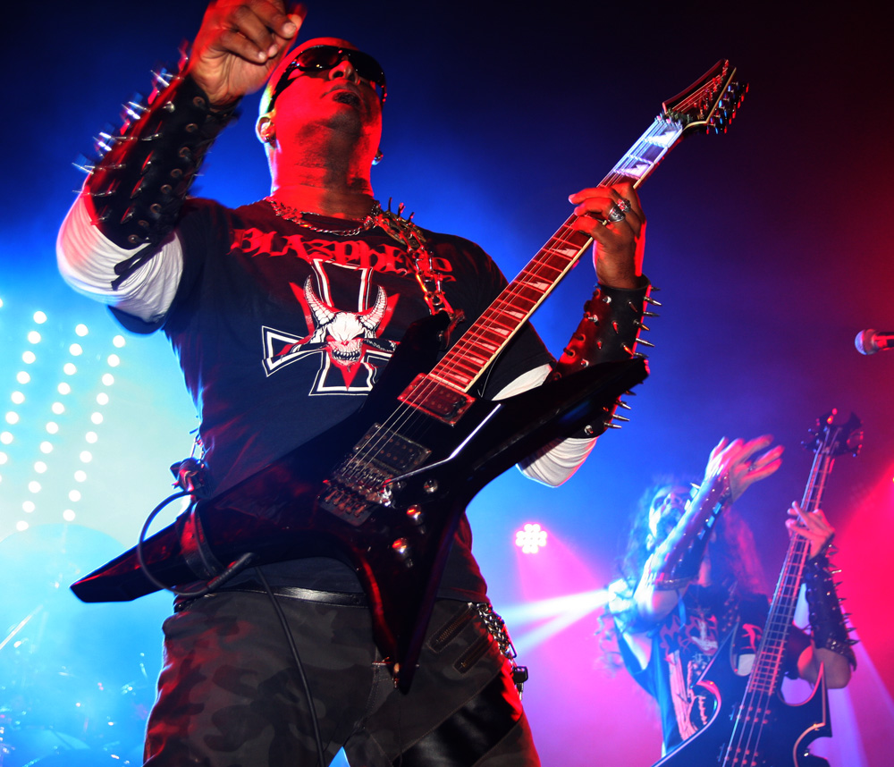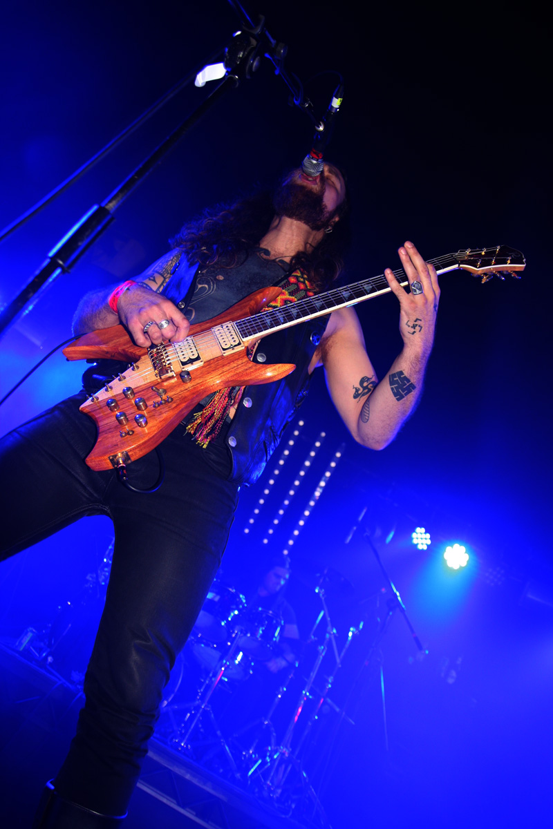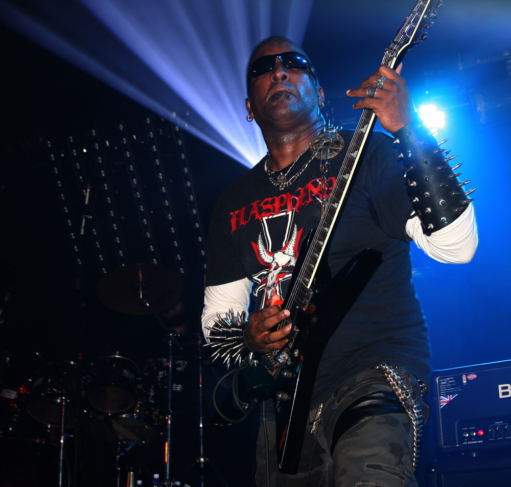 Songs about the end of Christianity add to the overall theme as spiky guitar work unleash the hate and vocals hit a necrotic croak. Defloration (The Antichrist Lives) foully oozes out the crypt and attacks evil cackles make it all the more stench ridden. A guest singer appears from somewhere and does a great job even if nobody quite knows who the hooded man was? It was rammed down the front and watching from the side with a much needed cold brew I wondered what on earth was going on as I could hear guitars but not see them. Ah Beelzeebubth is playing in the crowd, that explains it. Back on stage the command of “Destroy everything, kill your fucking selves” rang out. Err can we finish watching the show first please? Yes there was more left, the South Americans were not done with us yet carrying us across the threshold into the abyss for more magic and mayhem before leaving us spent knowing that this had been a very special ritual that would remain in the memory for some time to come.