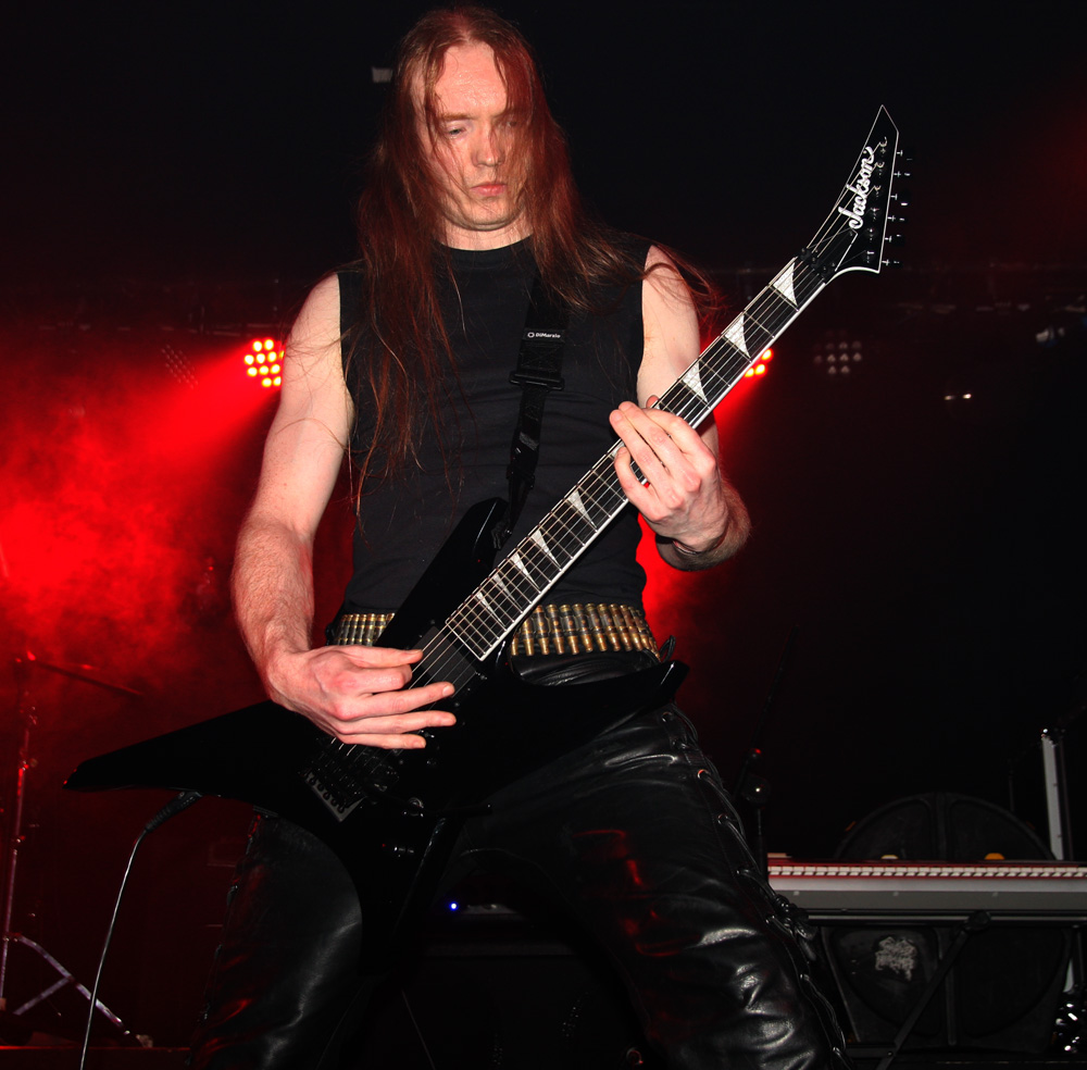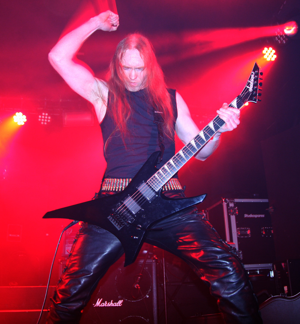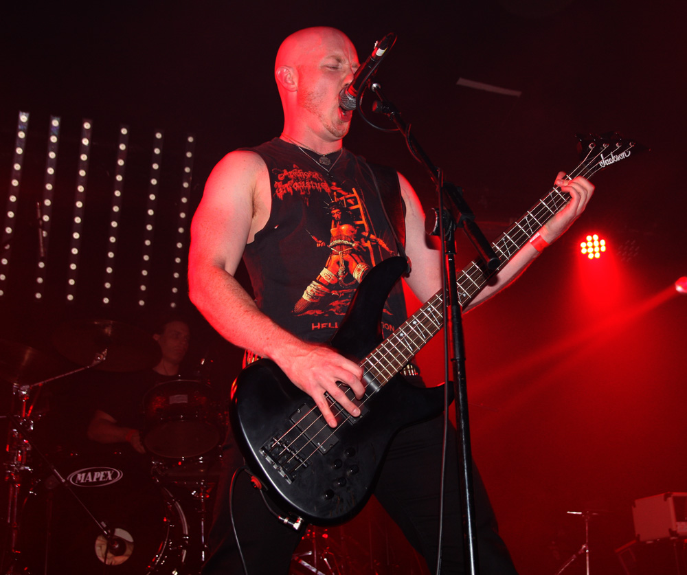 I could have sworn that Cruciamentum had said about ceasing live activities not too long ago but guess they have changed their minds as here they are. One thing they have not changed thankfully is their tune and it’s still one that’s abyssal death metal! Now I am slightly deaf by now but I think they said they had some new songs and Necrophagous Communion sounded like it was announced. If I have that completely wrong, someone out there grab it, it’s an excellent song title. The band seemed a bit less dense than I have seen them before too, not quite as chaotic in the mix with everything clear again rather than buried in it. It really suits too as they crush us into a filthy hellish brew of weighty blasts and intense vocal hollers. Crunching bass rumbled out the speakers, vocals took on a feral bite and the Brits gave all the SweDeath imitators crawling out the woodwork a real run for their money, slowing things down a left hand path and relentlessly driving it all back into an all consuming snarling mass. Deathless Ascension had me standing next to the speaker which was stupid but gave a good view of the pit which at last had got really fired up. Following demo track Convocation Of Crawling Chaos was battered out at ground force zero flattening velocity and moving into the thick of it was like being caught in a tornado. I thought that the 50 minutes the band had allotted to them might be a bit too much but again it breezed by leaving me hungering for more. Entranced in the slow crush of the last one, it was a bit like a death metal bringer of war and as formidable as anything Holst could have envisaged.