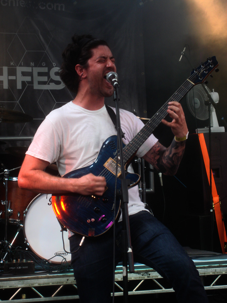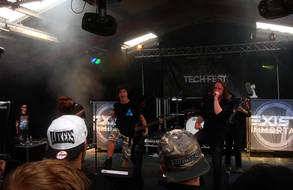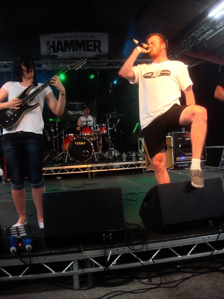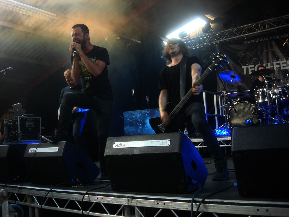 TechLogoAfter the over-riding success of last year’s event, Tech-Fest returned bigger, bolder and brighter. This year saw the team take over the Newark Showground with its simple access to hangars for the stages, merch stands, bar and promoters. Not to mention the outbuildings for the loos, food facilities and adjacent closely-cropped field with running water for the campers. Of course the nearby run-off strip that allowed for parking was a bonus too. On the downside, and it is a downside. Once all the speaker stacks, assorted lighting rigs and accompanying band gear had been rolled into place it was immediately apparent that the stages themselves were too low, too tight and too far back from the barriers. Once those hangars started filling up, there was only ever going to be a clear line of sight for the first few rows. That was an unforgivable oversight and, word of warning, one that will undoubtedly impinge upon this review.